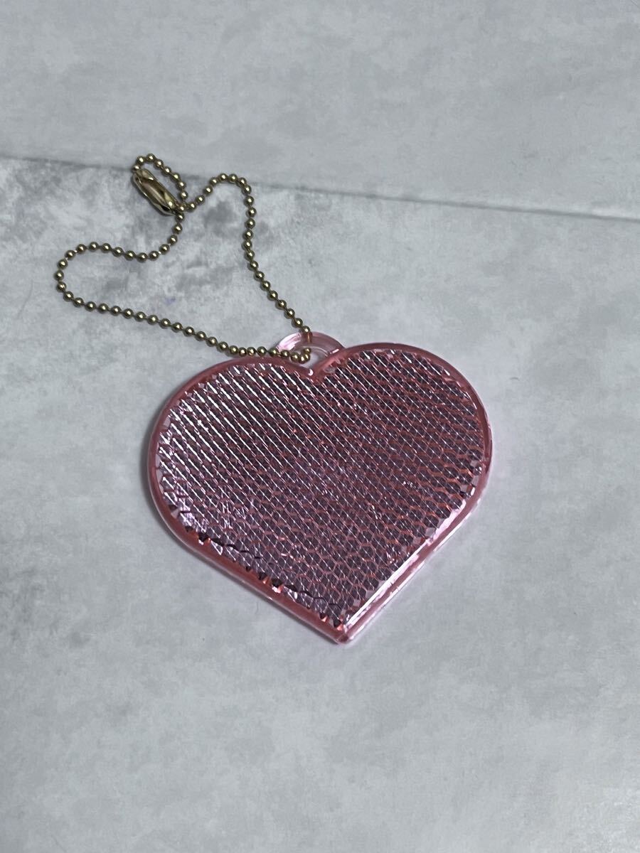 未使用 ピンク ハート 反射板 リフレクター キーホルダー ボールチェーン