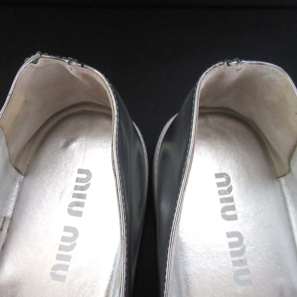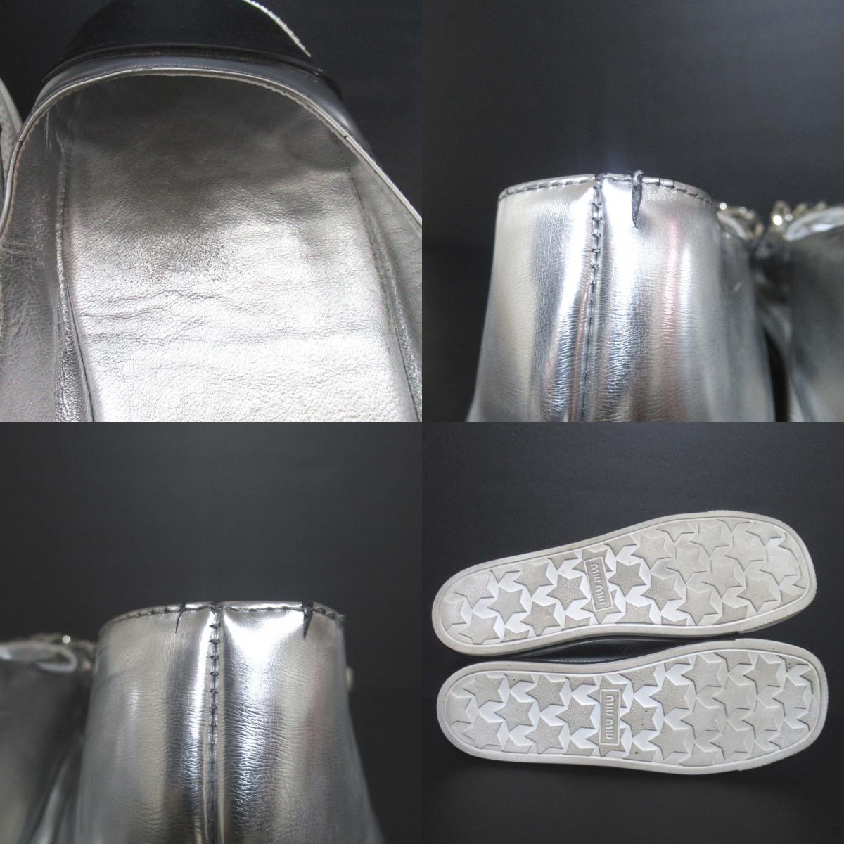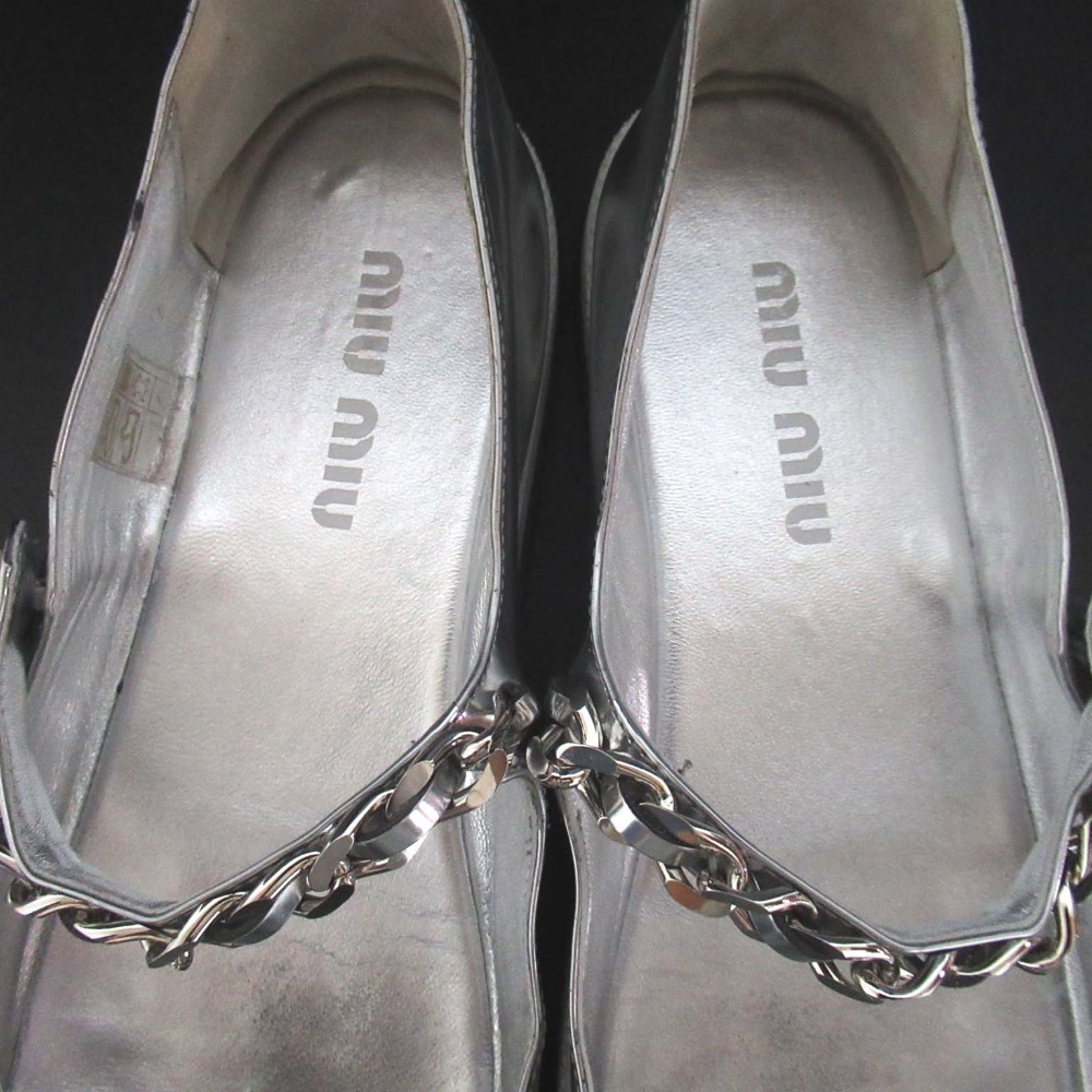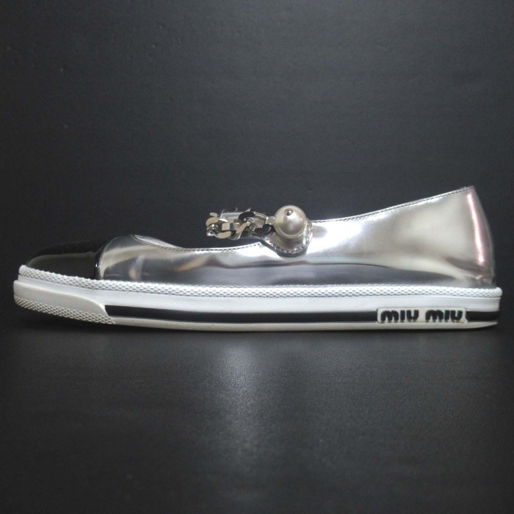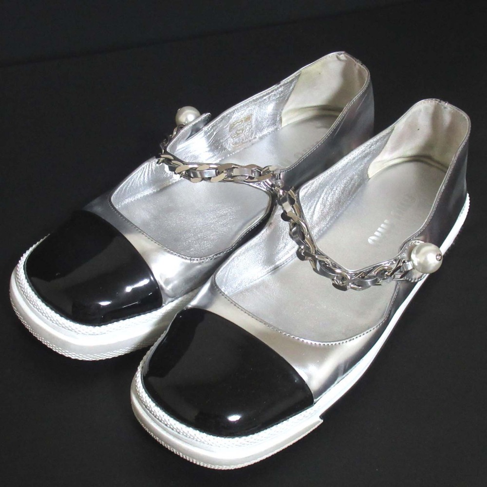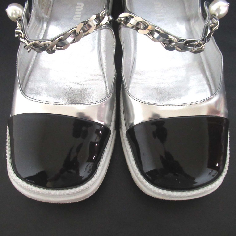 美品 miumiu ミュウミュウ パール×チェーンストラップ メリージェーン パンプス サイズ38.5 約25.5cm シルバー×ブラック