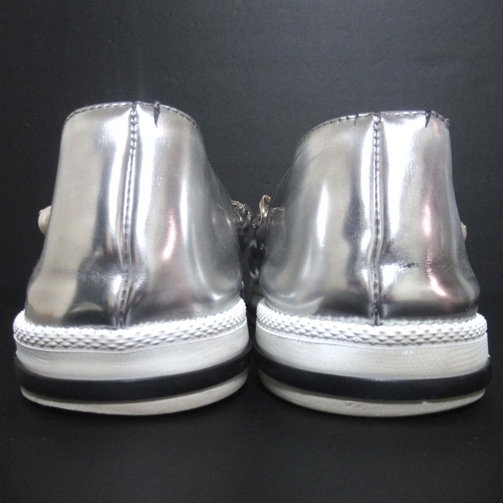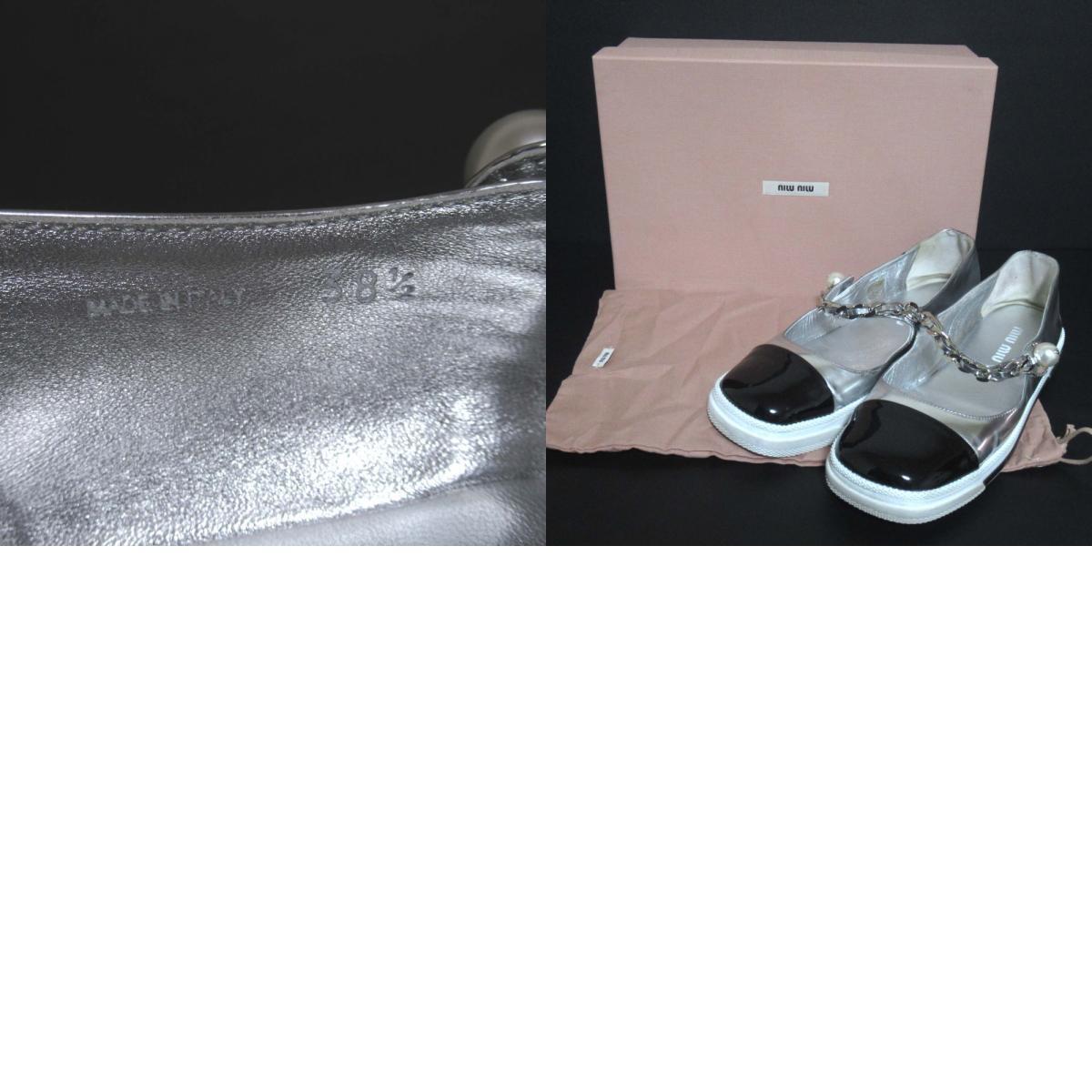 商品名:miumiu ミュウミュウ パール×チェーンストラップ メリージェーン パンプス サイズ38.5 約25.5cm シルバー×ブラック