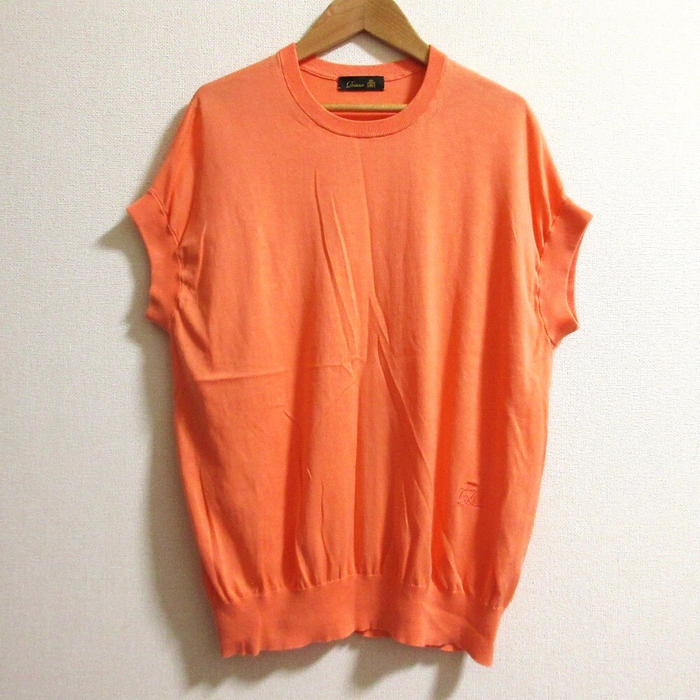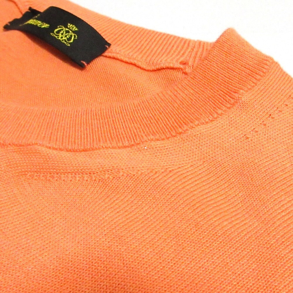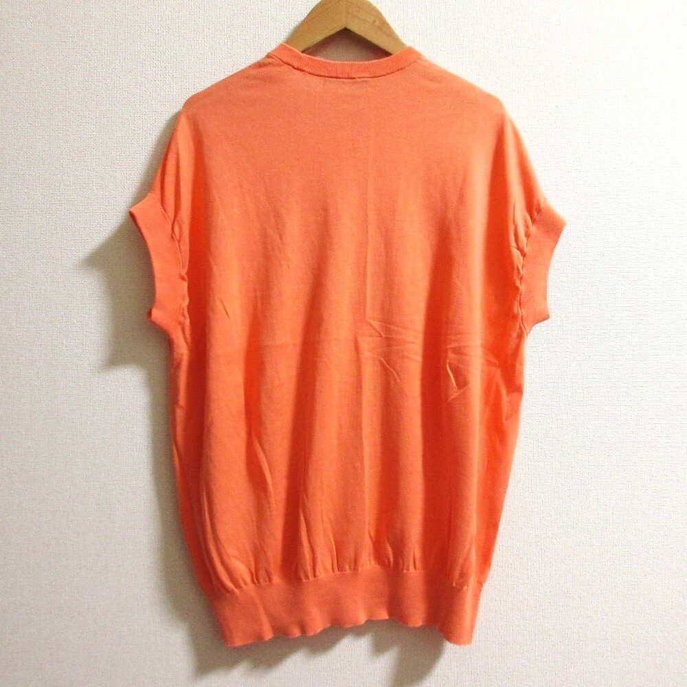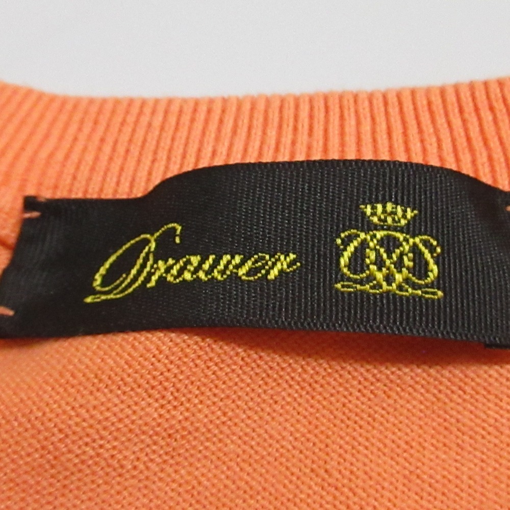 良品 Drawer ドゥロワー コットン100% 16G天竺編み ロゴ刺 クルーネックノースリーブニットカットソー 6518-105-0502 オレンジ