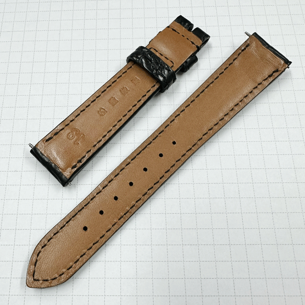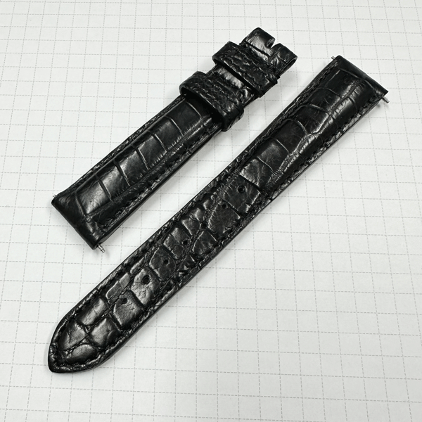 【未使用・展示処分品】 時計用ストラップ/ベルト 松重厳選 ワニ革 黒マット 18mm-15mm