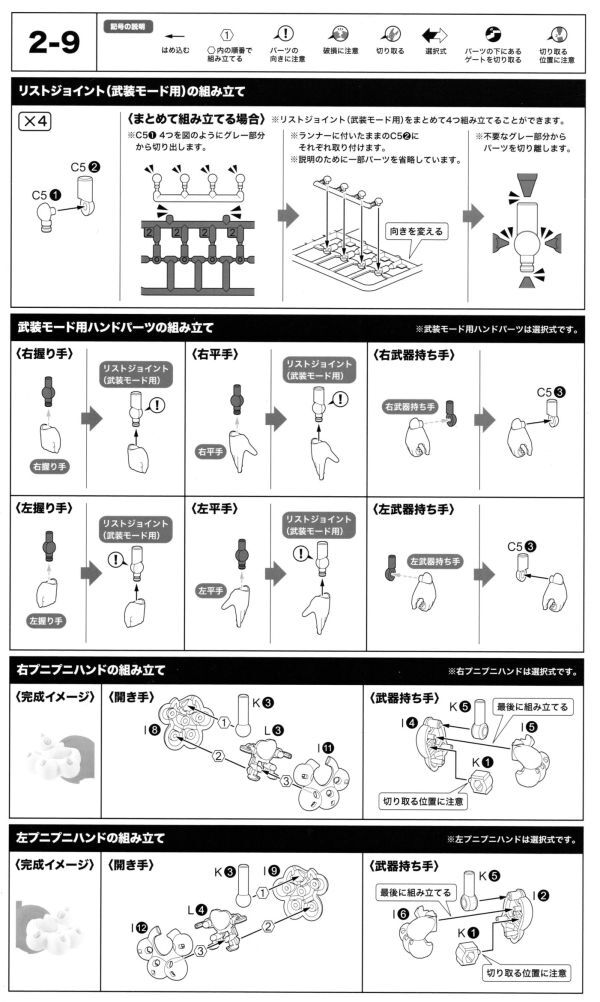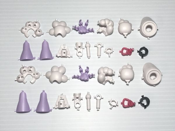 ・説明書の2-7ページ『右腕の組み立て』『左腕の組み立て』2-9ページ『右ぷにぷにハンドの組み立て』『左ぷにぷにハンドの組み立て』が組み立てることができるパーツのセットになります。