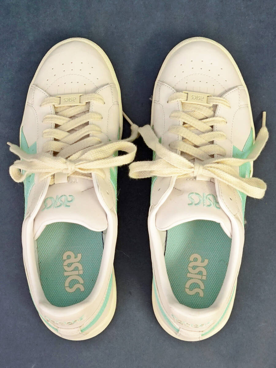 1983年に発売されたバスケットボールシューズFABRE POINTGETTERをデザインベースとした、コートミドルカットタイプの【GEL-PTG MT】。