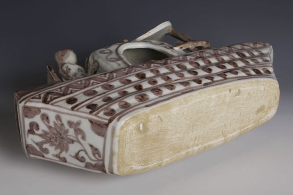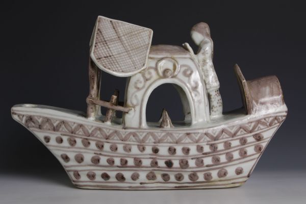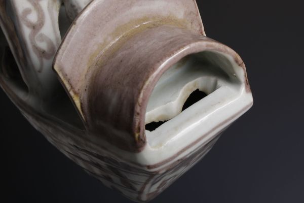 N26149 中国陶器 釉裏紅船形水滴 水差 大水滴 置物 書道具 文房具 中国 古玩 唐物