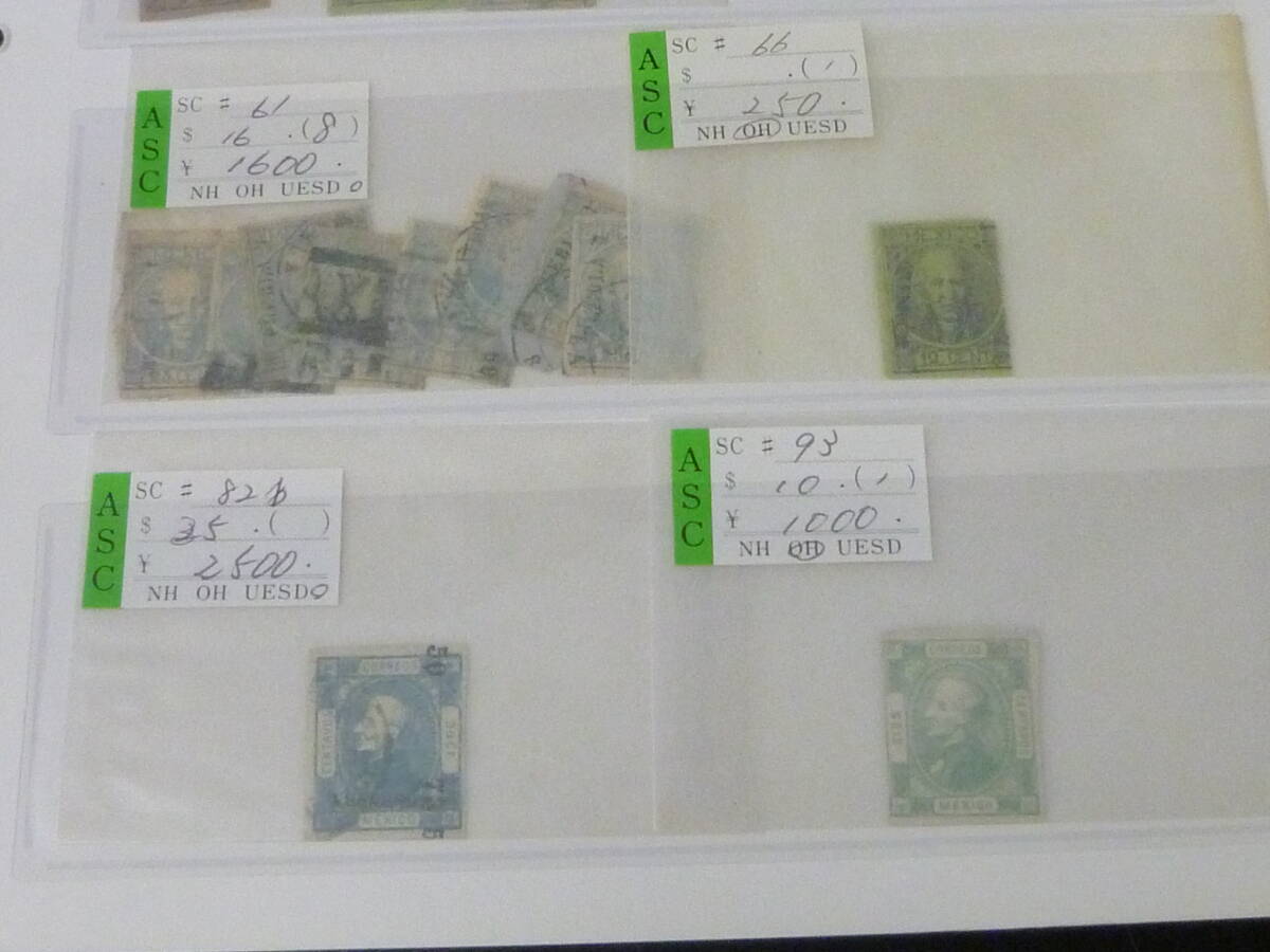 25 M №9 メキシコ切手 クラシック 1856-1872年 SC#2-93の内 計33枚 2リーフ 使用済(1枚サケ有)・未使用OH含 【SC評価 $318】