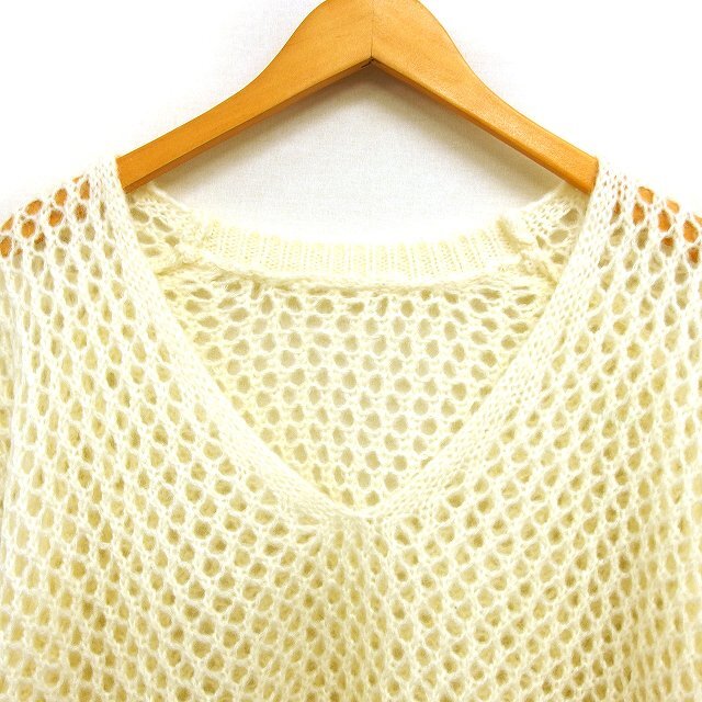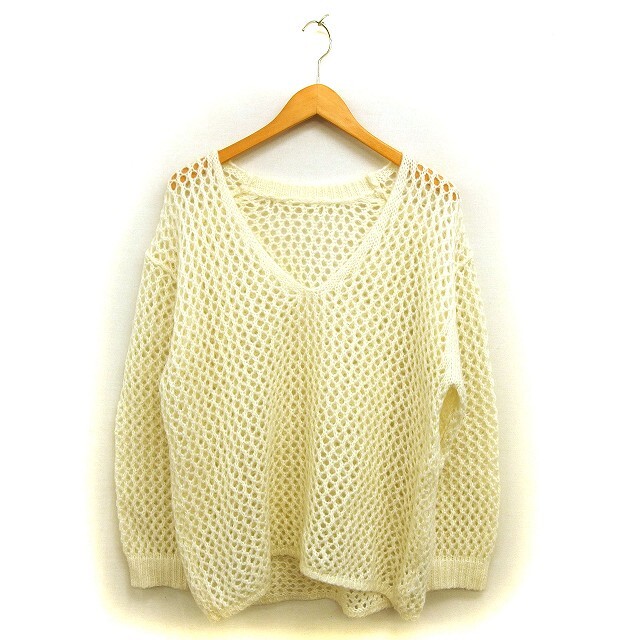 レイビームス Ray Beams Vネック メッシュ編み ニット セーター ウール混 ワイド リブ ドロップショルダー 長袖 オフホワイト /NT8