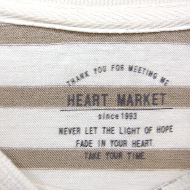 ハートマーケット HEART MARKET ボーダー Tシャツ 長袖 丸首 コットン 綿 F ホワイト ベージュ /FT15 レディース