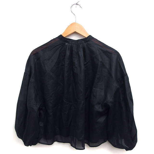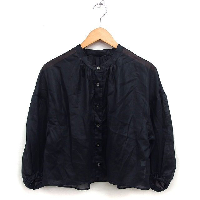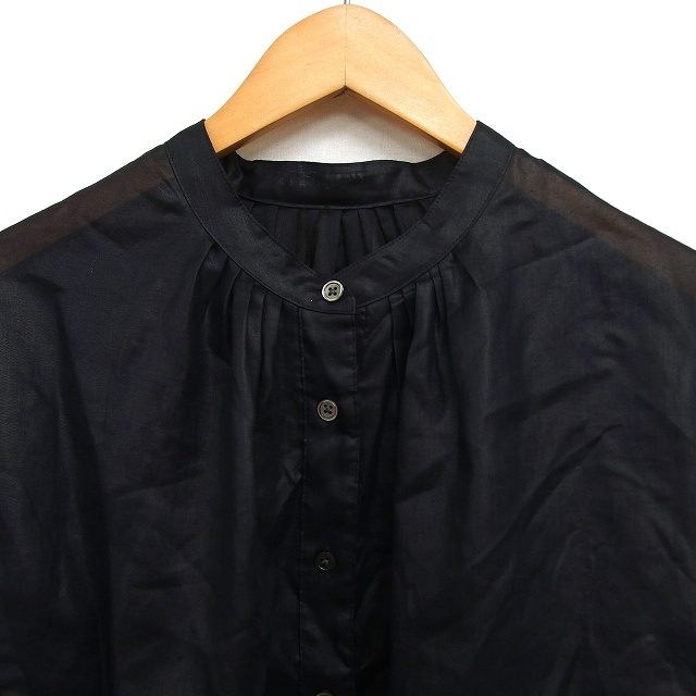 グリーンレーベルリラクシング ユナイテッドアローズ green label relaxing シアー ブラウス ワイド 羽織 ギャザー バンドカラー ブラック