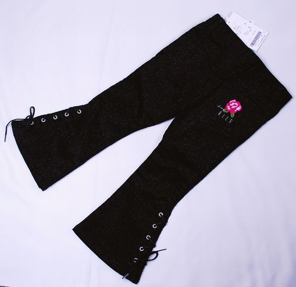 Last ELLE 100 綿ストレッチ薔薇ラメ ブーツカットパンツ黒