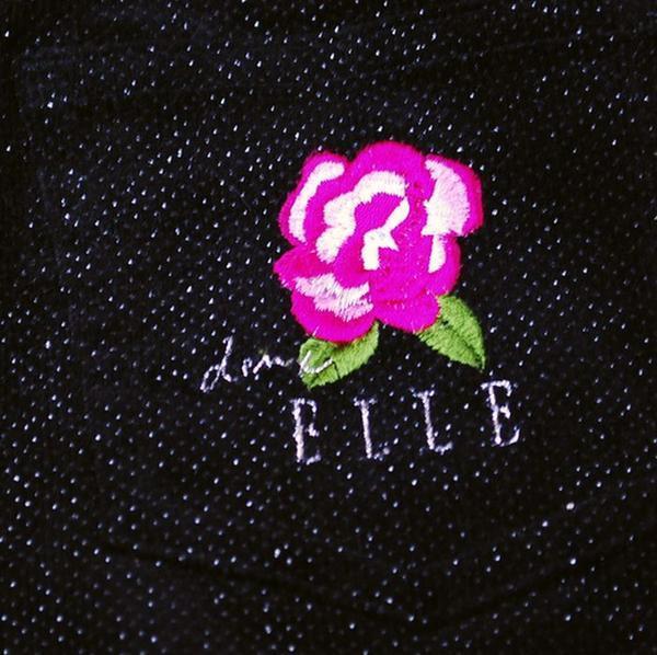 ELLEのラメのベロア地に丁寧な薔薇刺繍が印象的な、編み上げブーツカットパンツです。