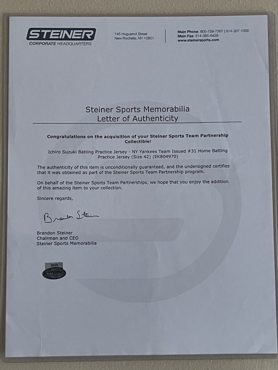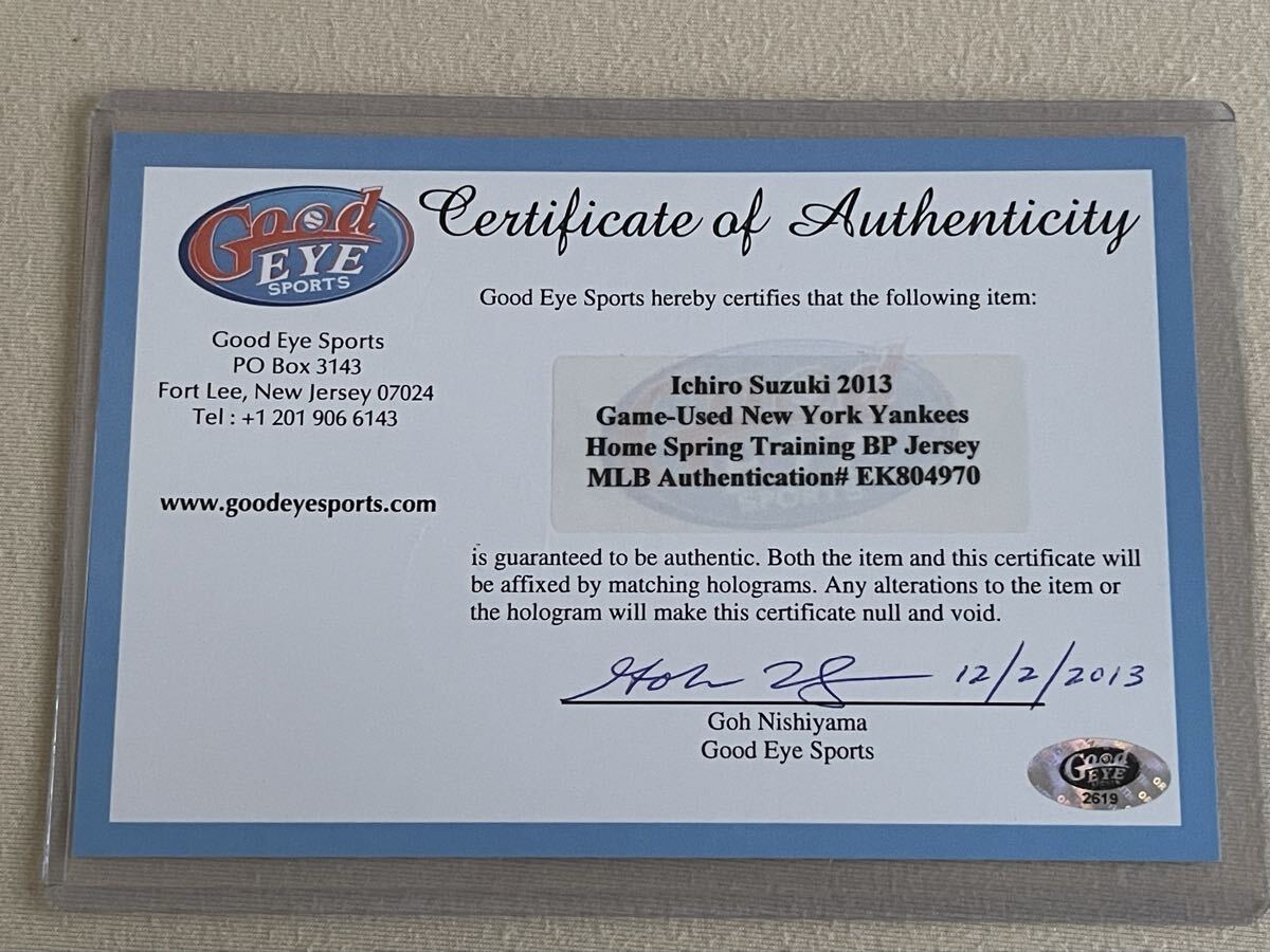 2013 実使用ジャージ イチロー ICHIRO ヤンキース 2枚の証明書 & ホログラム(スタイナー社)付出品します。