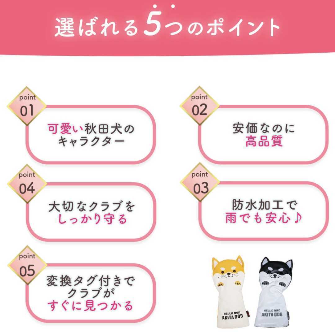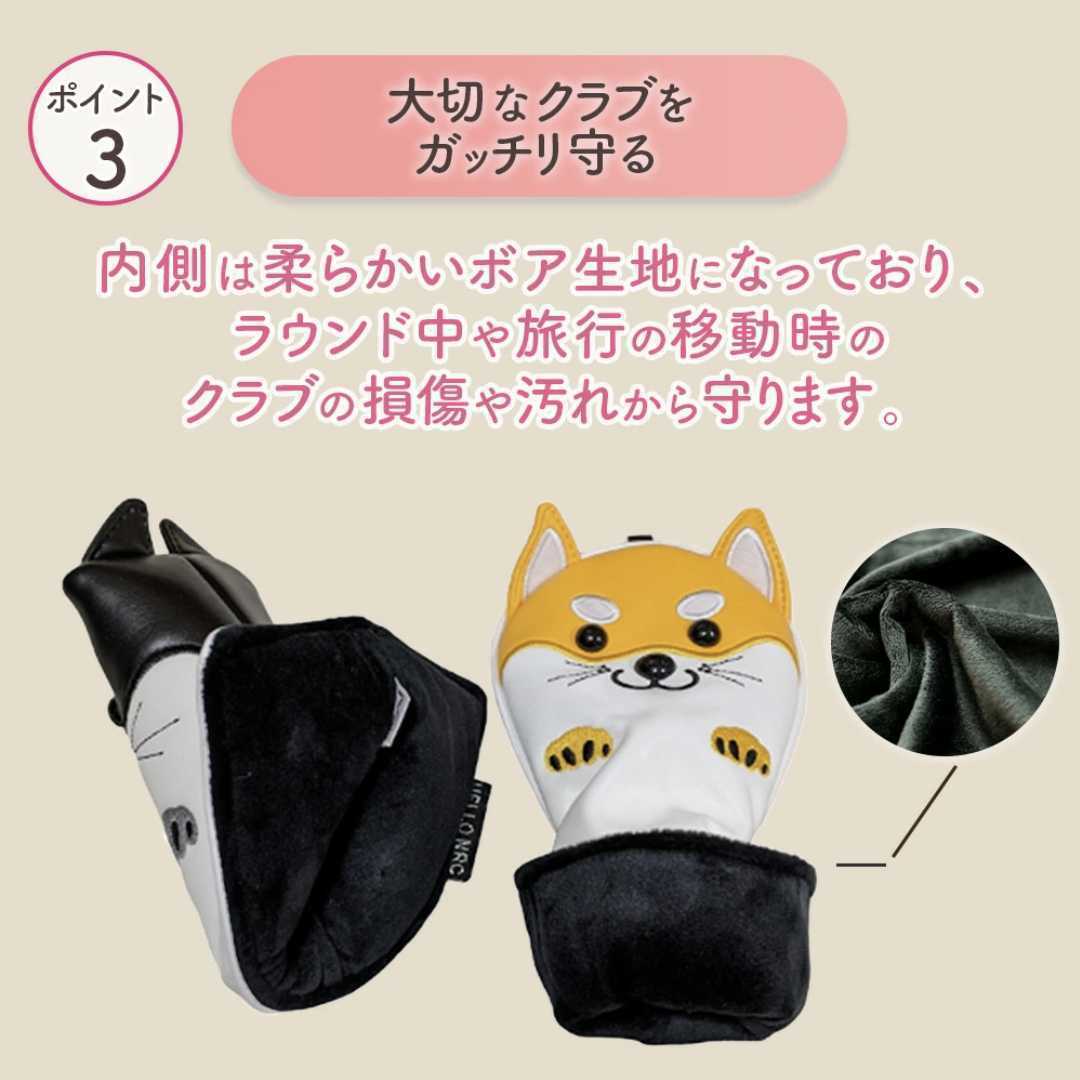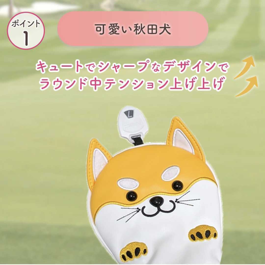 秋田犬の可愛さがあふれたゴルフクラブヘッドカバー。