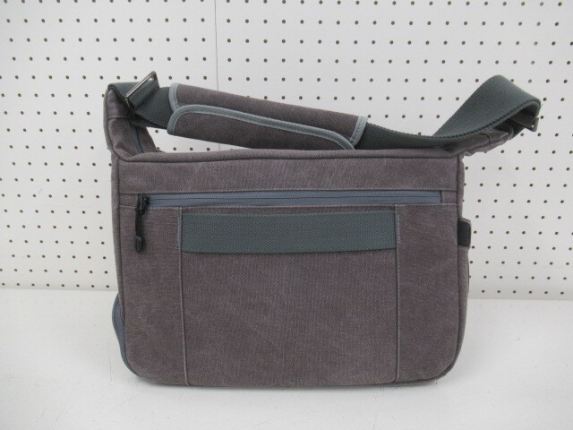 【状態詳細】底に三脚が入るナチュラルなキャンバス調のショルダーバッグ