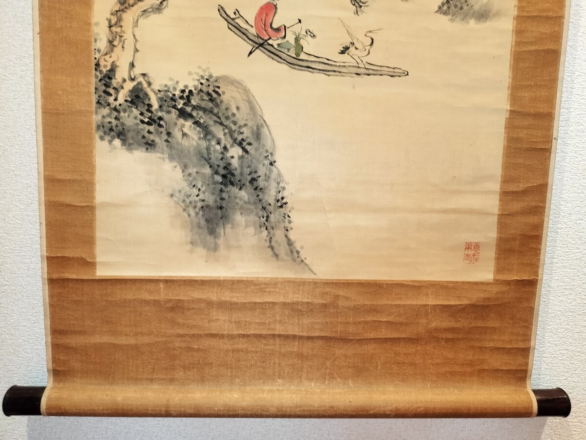 ※掛軸の軸先は接着部分の劣化により、輸送時に外れてしまう場合がありますが、ほとんどが100年以上経過した品で外れやすくなっておりますので、万が一外れてしまった場合はご容赦くださいますようお願い申し上げます。