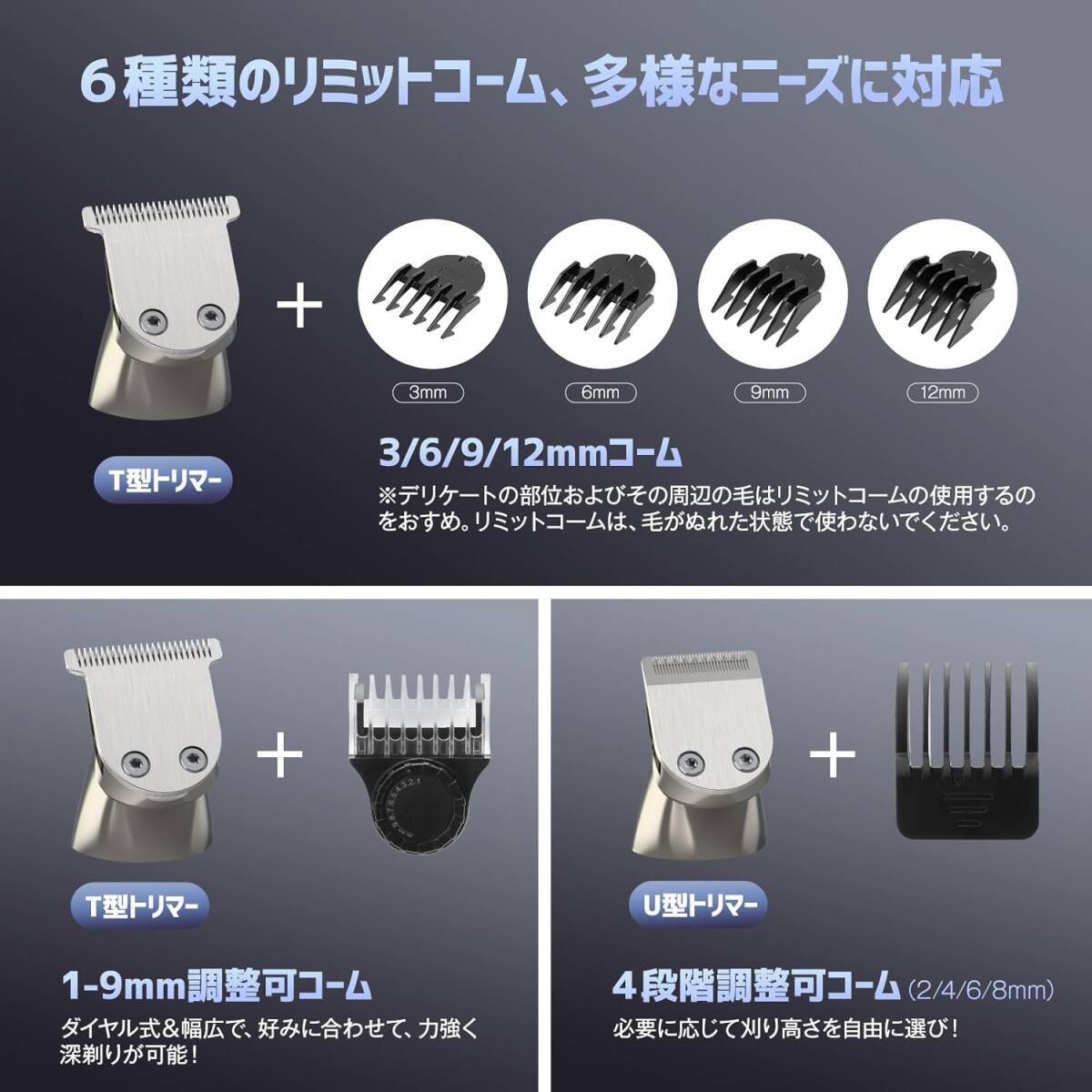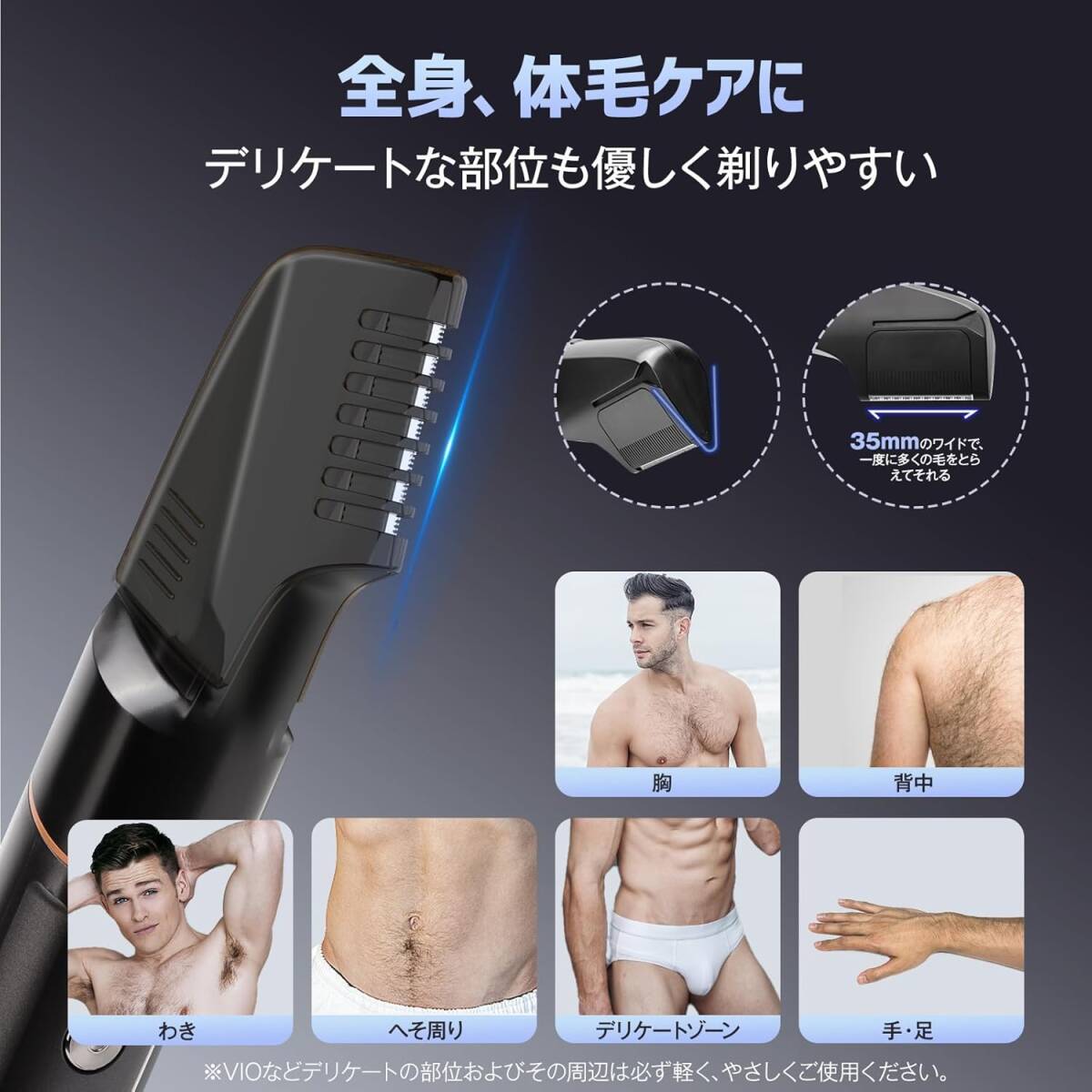 Beedove ボディシェーバー vio シェーバー メンズ 1~12mm長さ調整【1台5ヘッド&2充電方法&磁気式】むだげ処理 全身適用 髪/髭