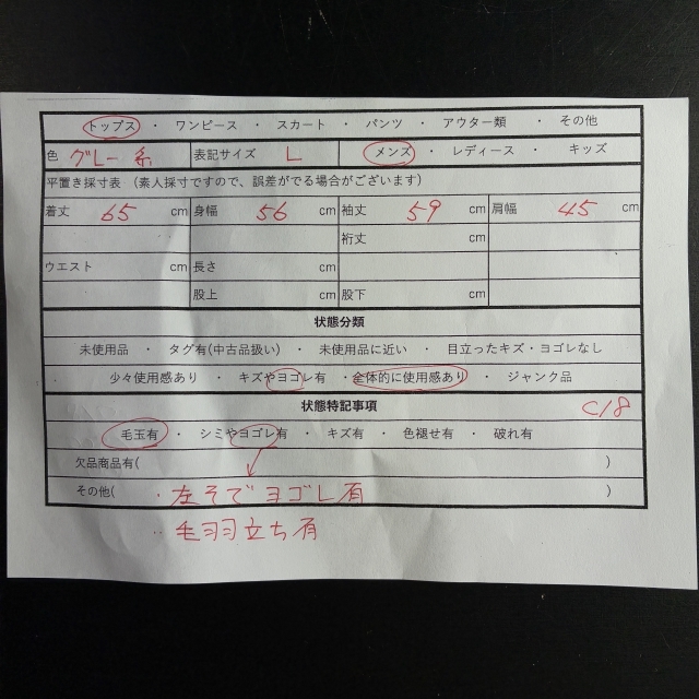 ・シミやヨゴレ有(左そでヨゴレ有)