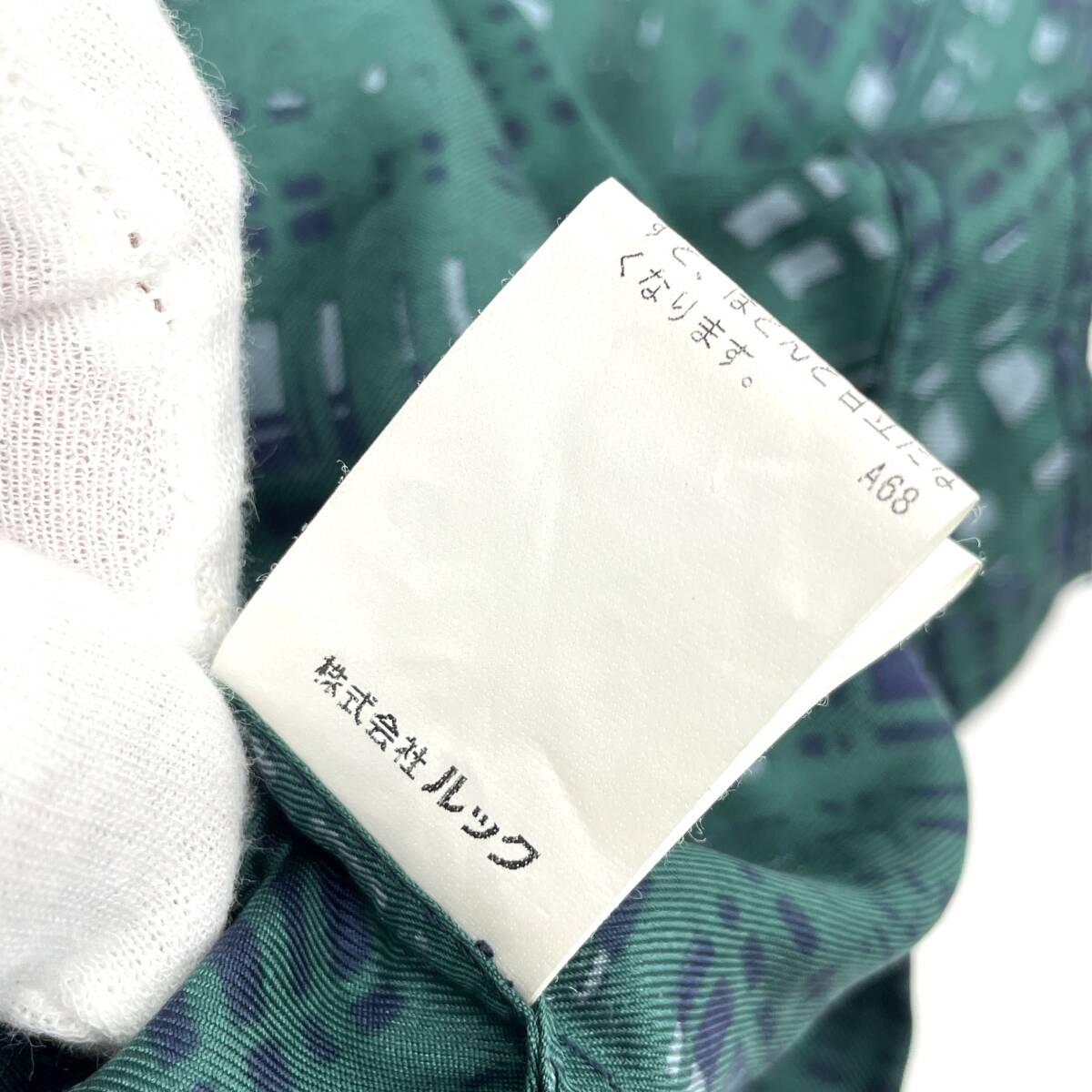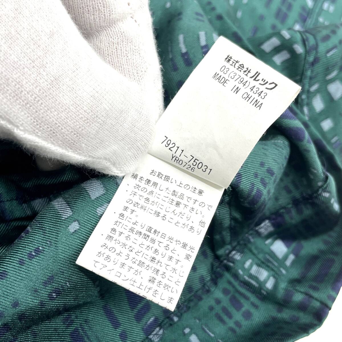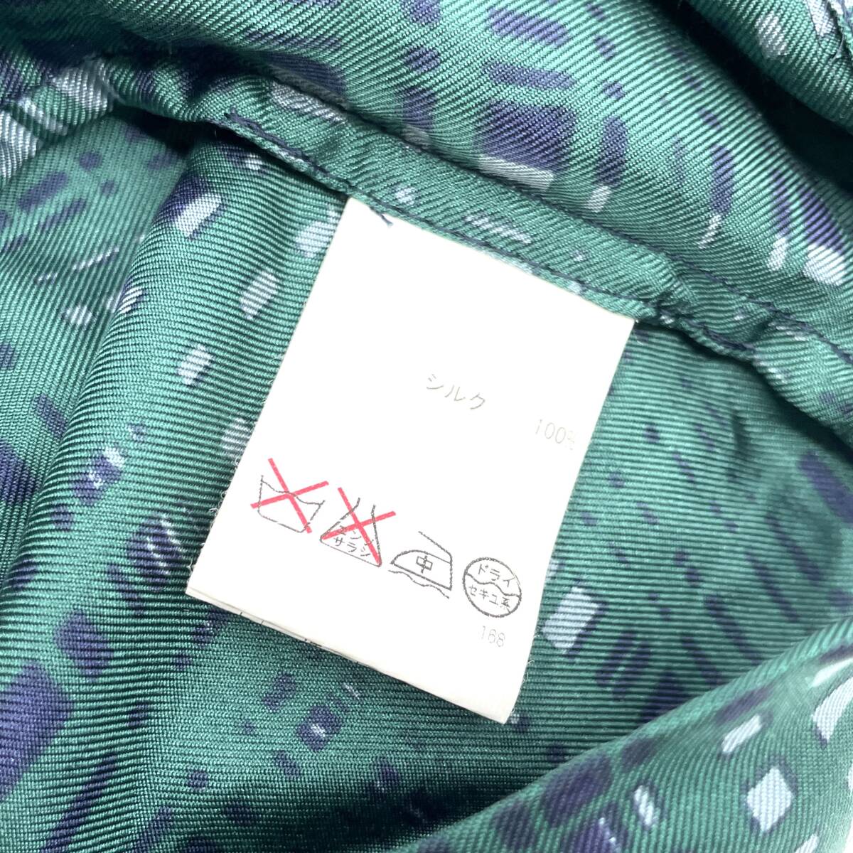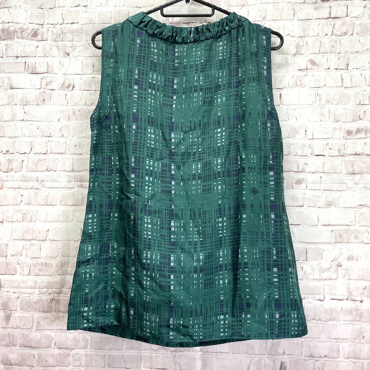 ノースリーブ ブラウス シルク グリーン×ネイビー チェック柄 ロゴプリント ゴールド金具