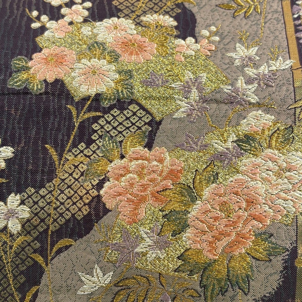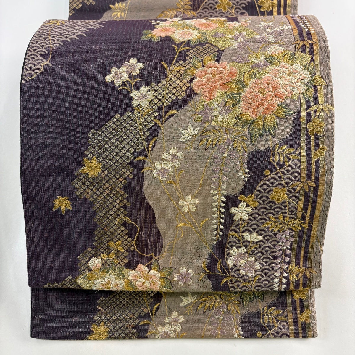 | 袋帯 美品 秀品 草花 青海波 金糸 箔 紫 六通 正絹 【中古】 |