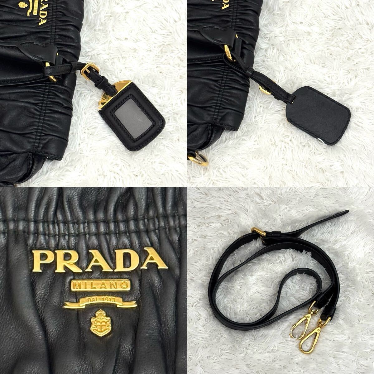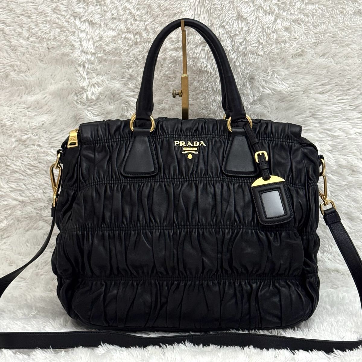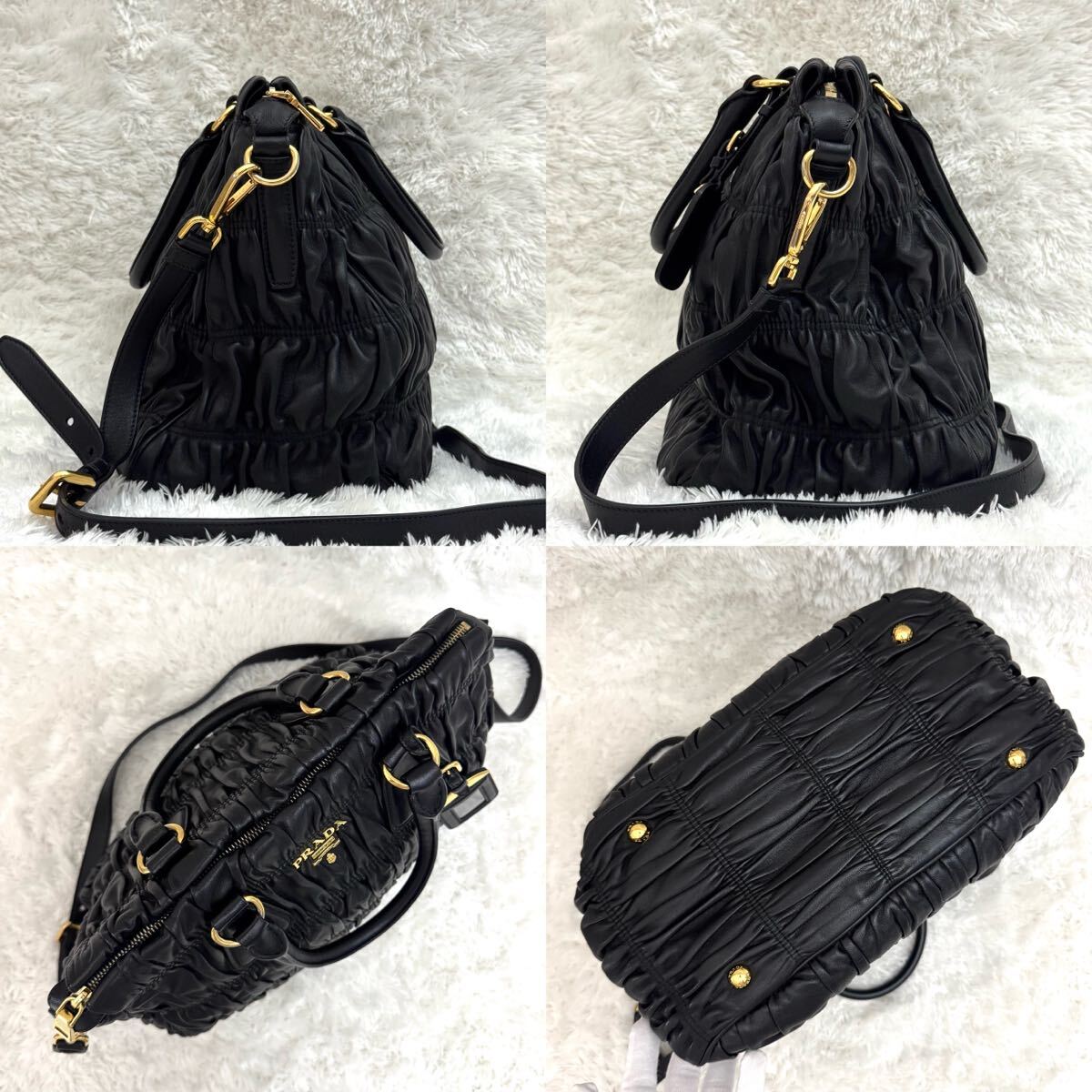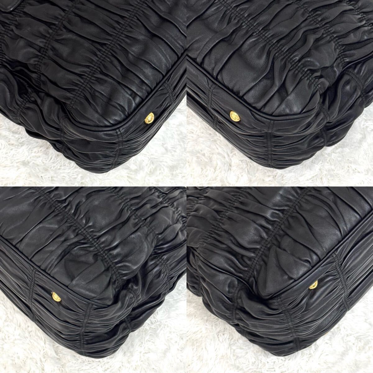 PRADA プラダ ゴーフル ギャザー ショルダーバッグ ナッパレザー トートバッグ ハンドバッグ レザー ブラック 黒 2way