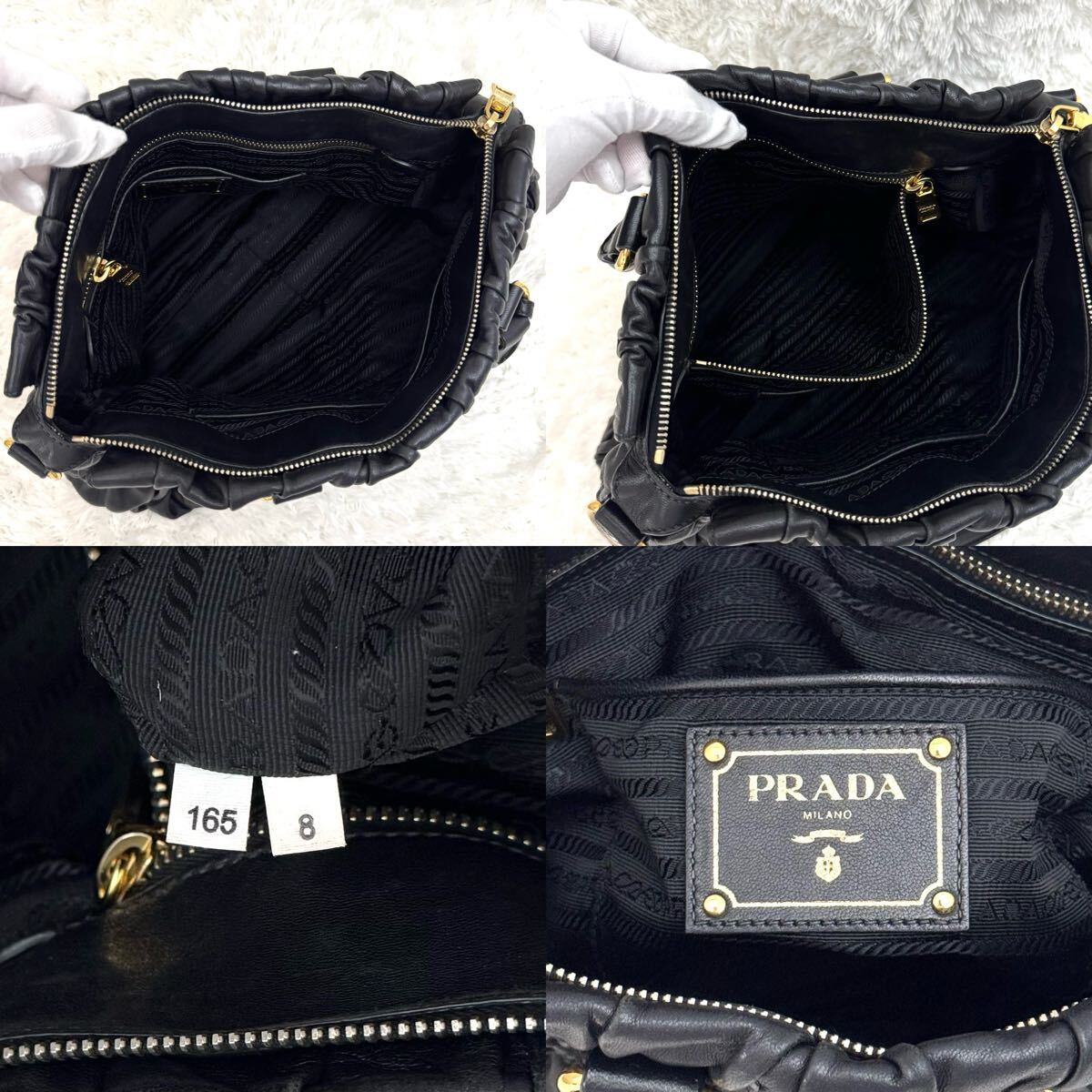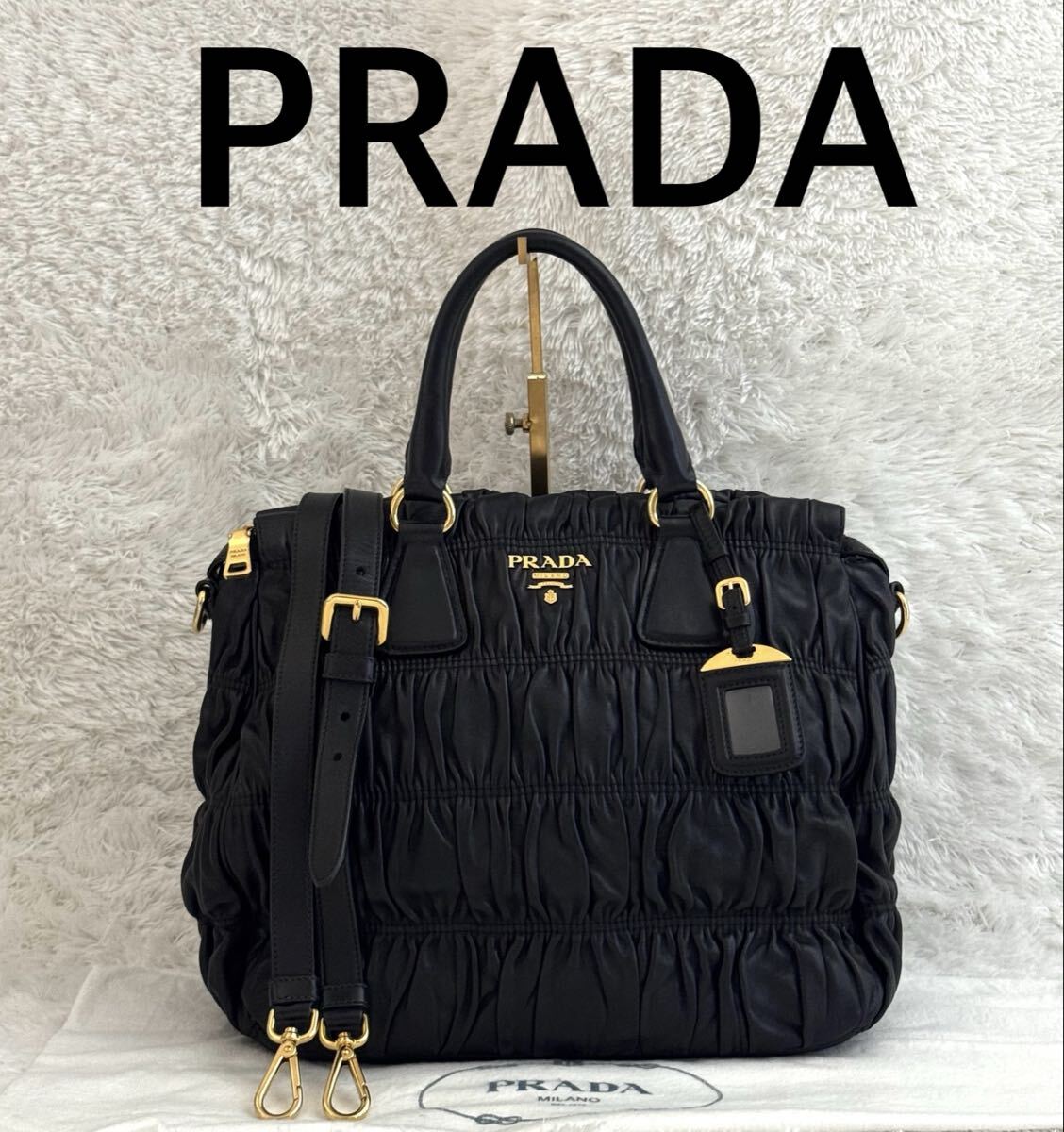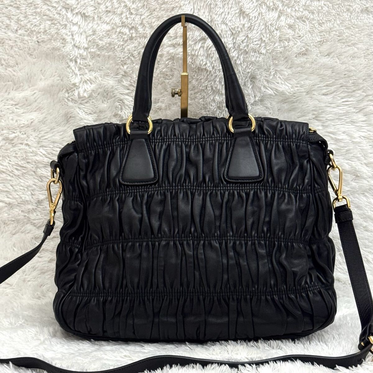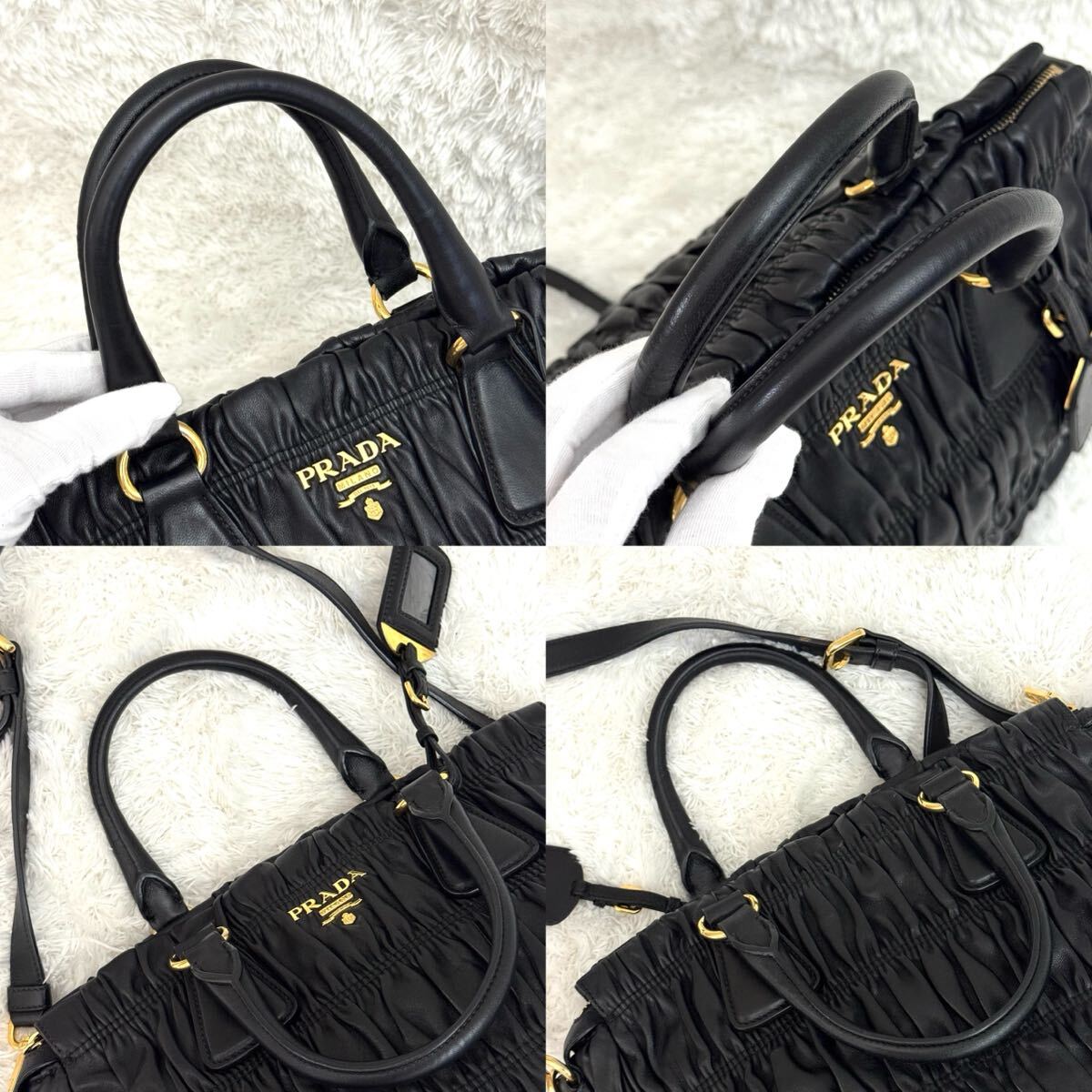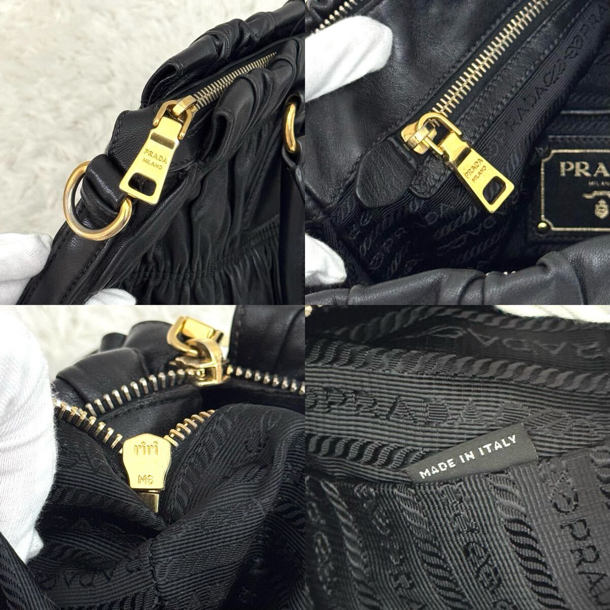 PRADA プラダ ゴーフル ギャザー ショルダーバッグ ナッパレザー トートバッグ ハンドバッグ レザー ブラック 黒 2way