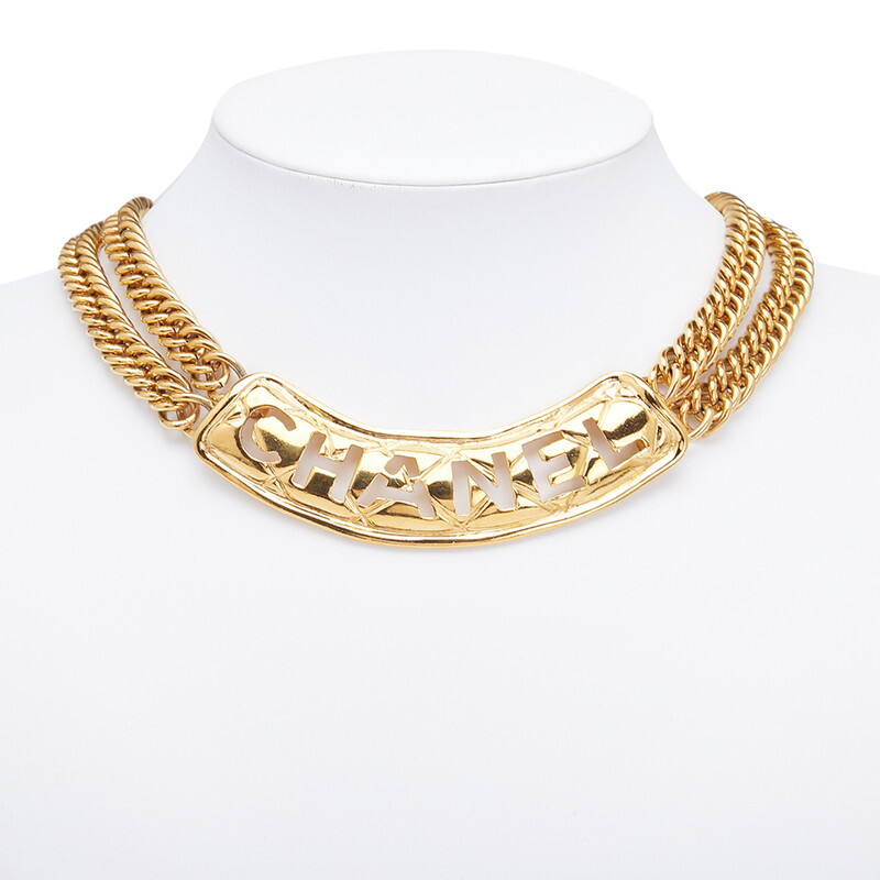 シャネル ロゴ マトラッセ ネックレス チョーカー ゴールド メッキ レディース CHANEL 【中古】