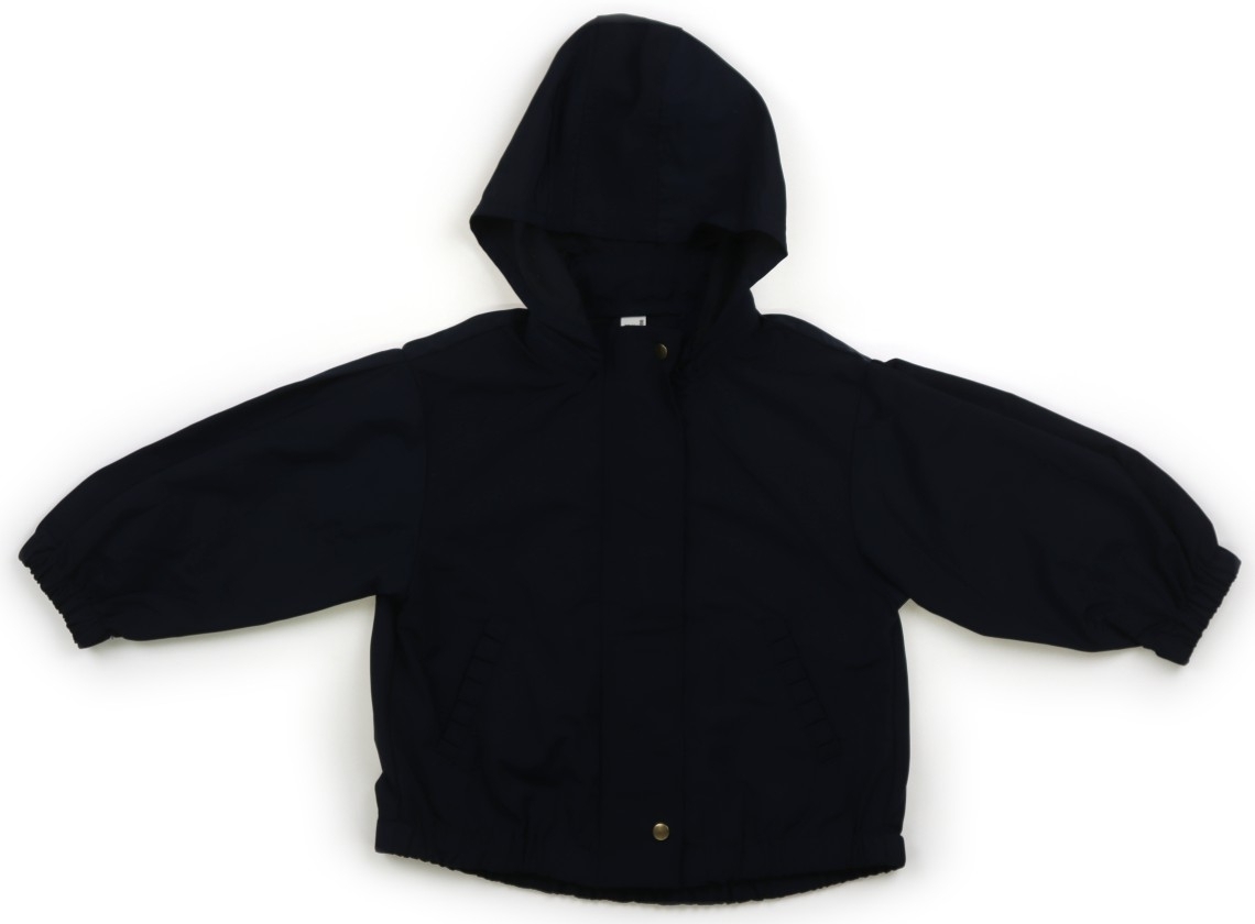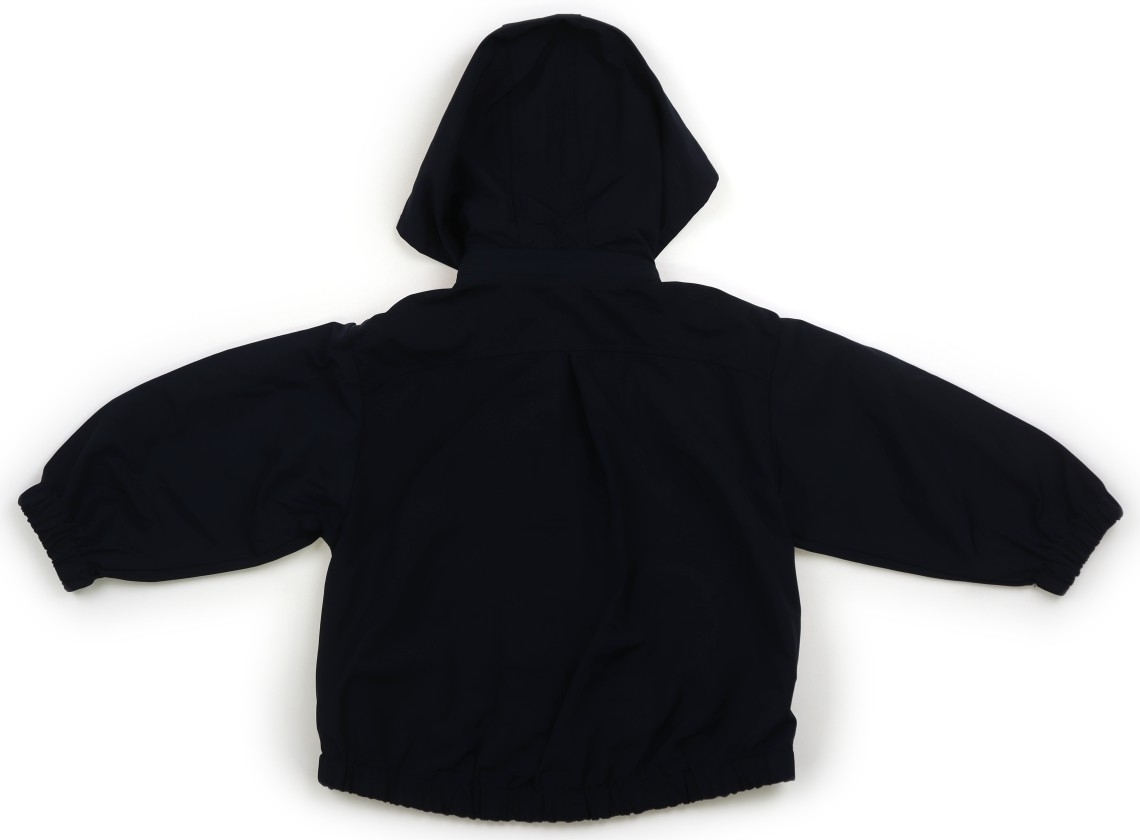 ポリエステル生地で裏地なし。フードの取り外しが可能です。前ファスナー。使用感は見られますが、目立った汚れはありません。