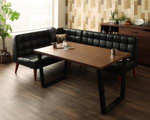 ヴィンテージスタイル・リビングダイニングセット 3人 3点セット(テーブル+ソファ1脚+アームソファ1脚) 左アーム W120