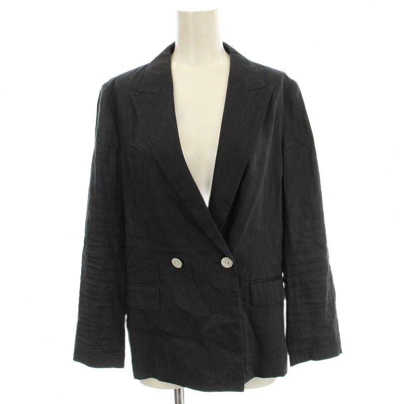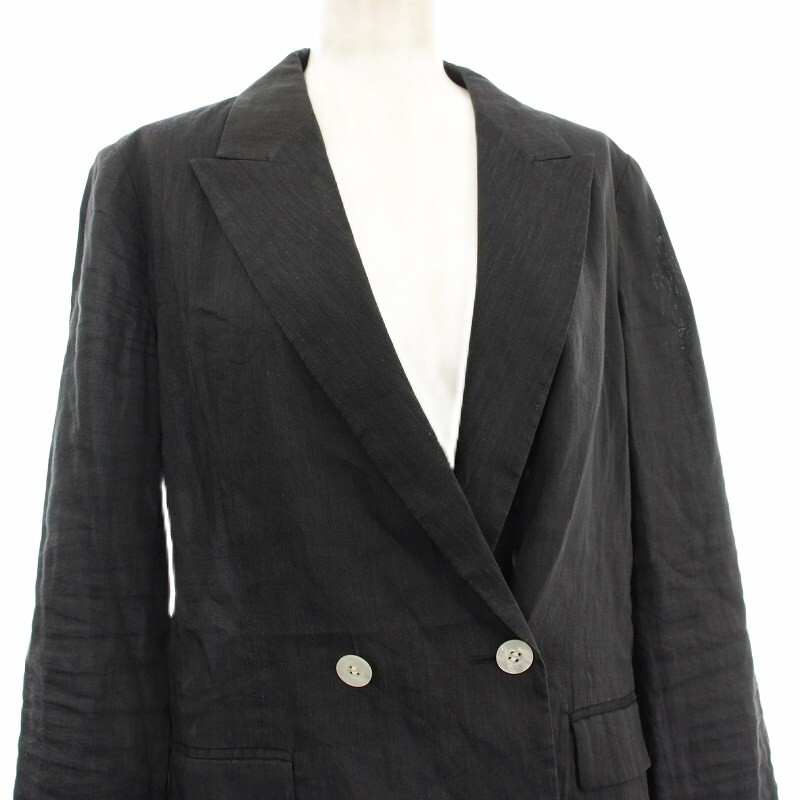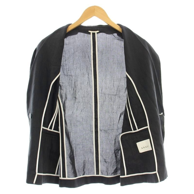 アナイ ANAYI 19SS リネンジャケット 101917-10-170-65 ダブル テーラードジャケット 36 黒 ブラック