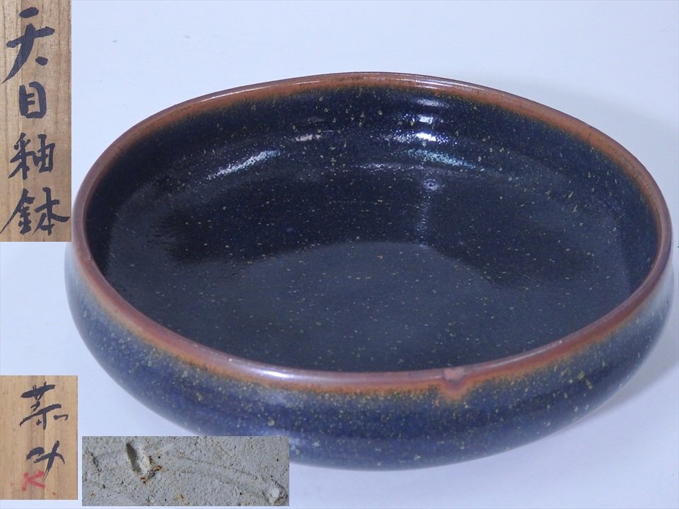 ★備前焼 人間国宝 父は藤原啓 兄は藤原雄 藤原敬介(恭助)作【天目釉 鉢 共箱】状態良好! 和食器 菓子器 茶道具 茶器