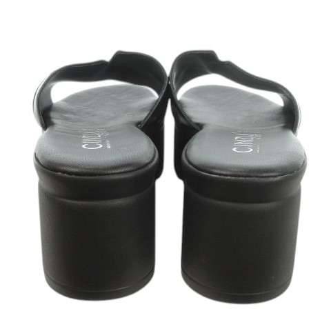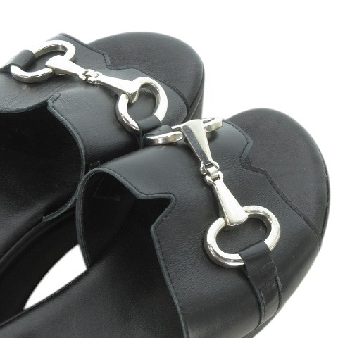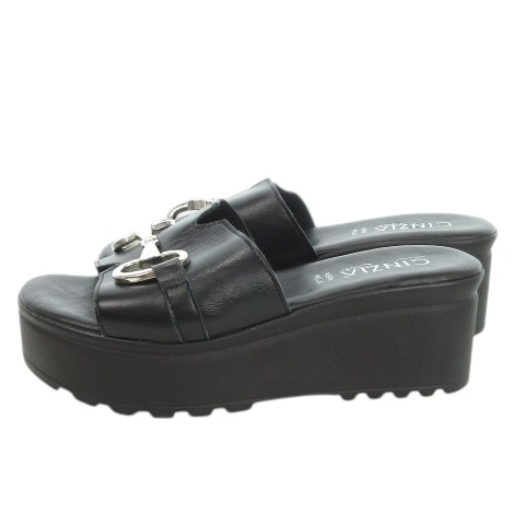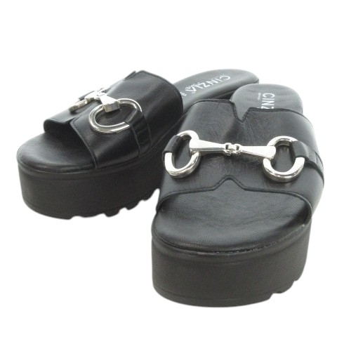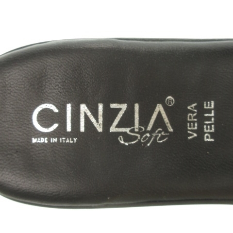 CINZIA Soft 厚底サンダル ミュール ハイヒール レザー シルバー金具 大きいサイズ 39 26cm 黒 ブラック /MN4 ■GY19 レディース