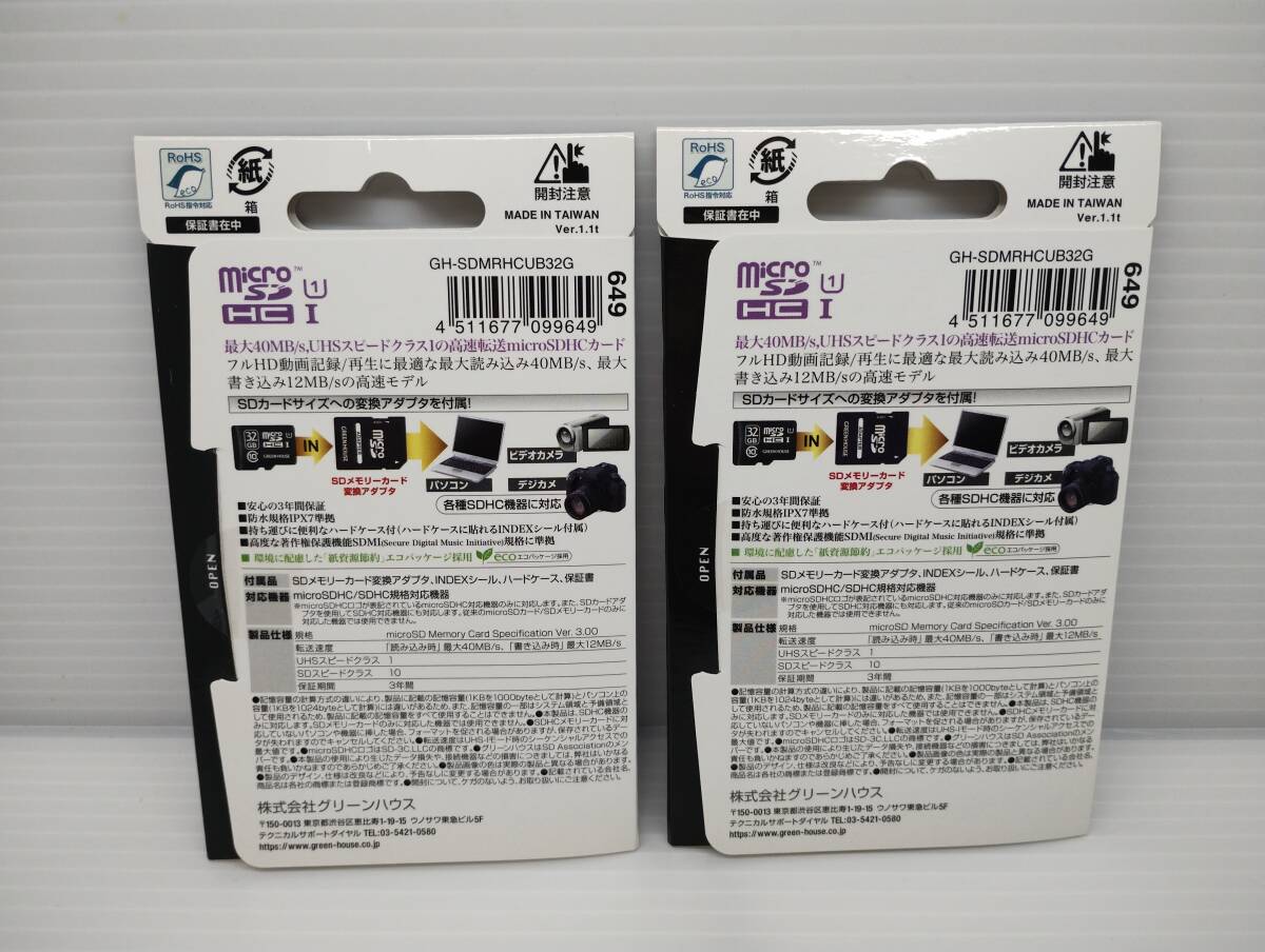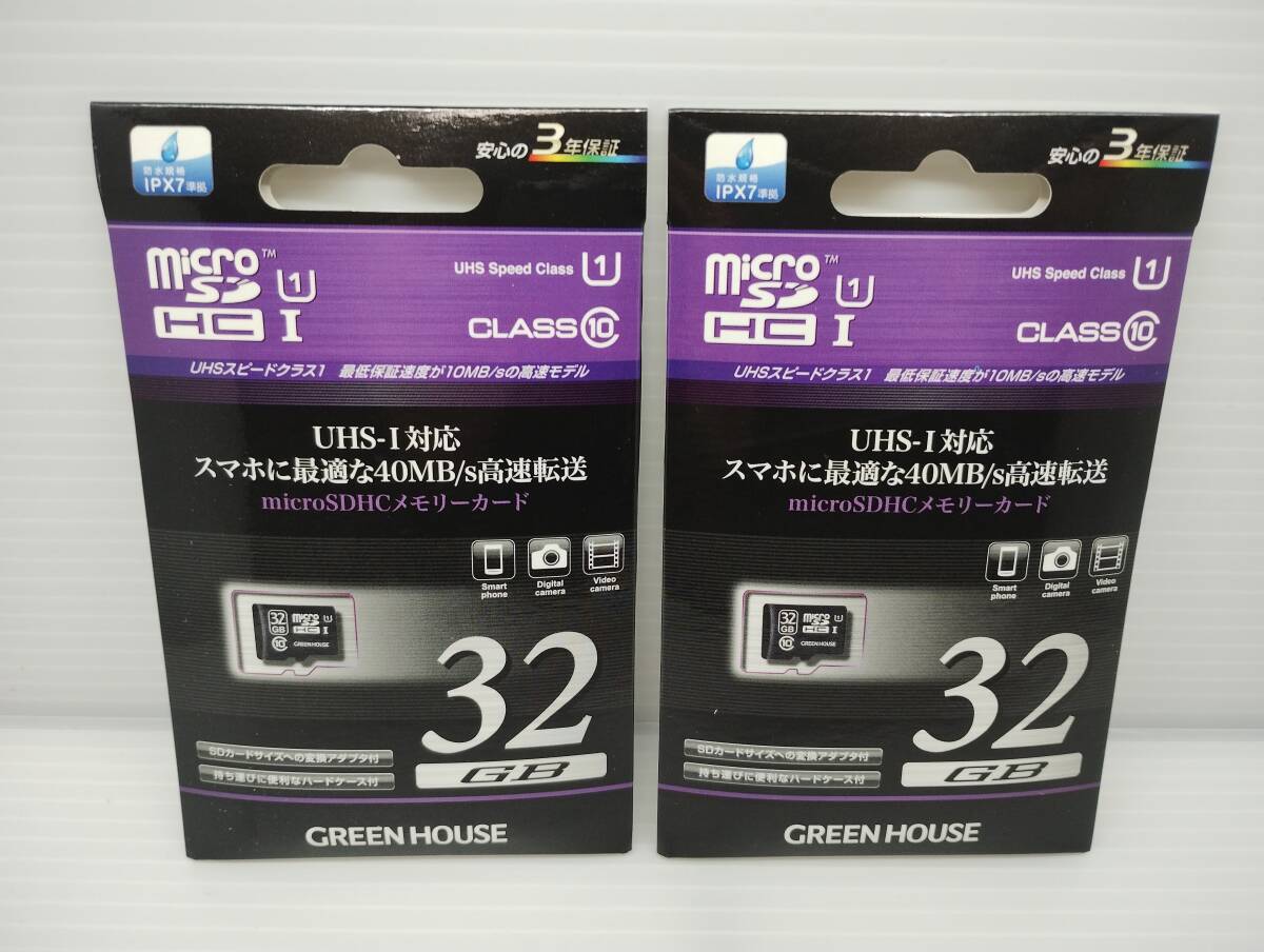 2枚セット 未開封品・未使用品 microSDHCカード 32GB GREEN HOUSE 変換アダプター付き メモリーカード microSDカード