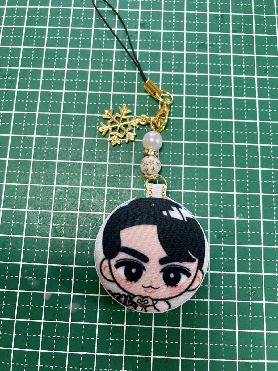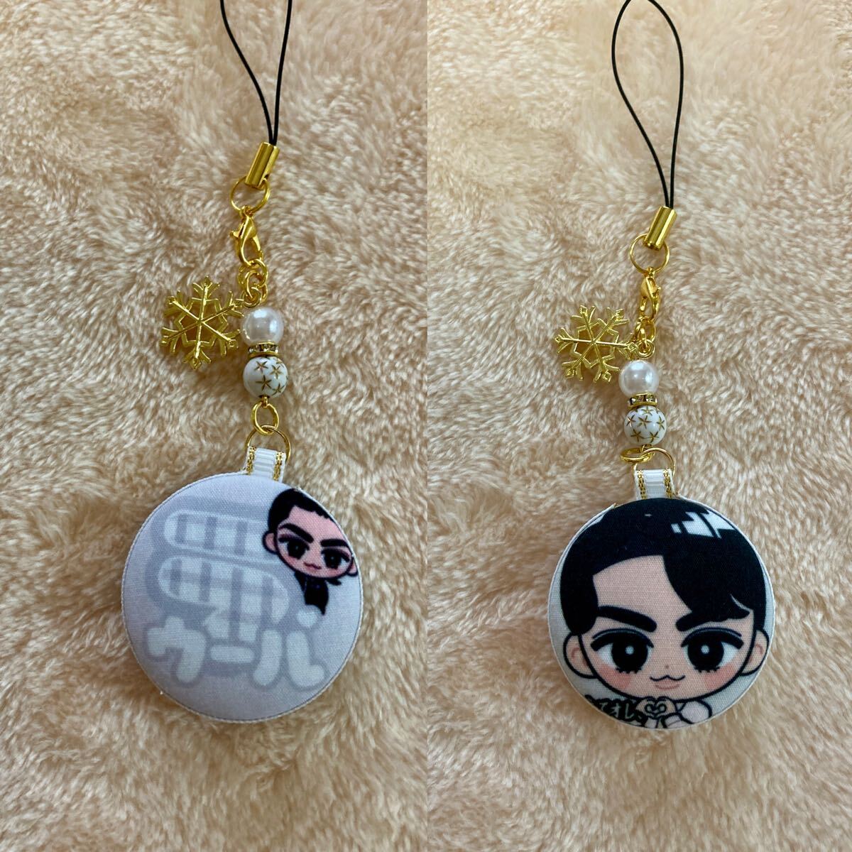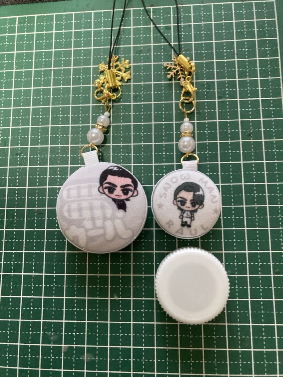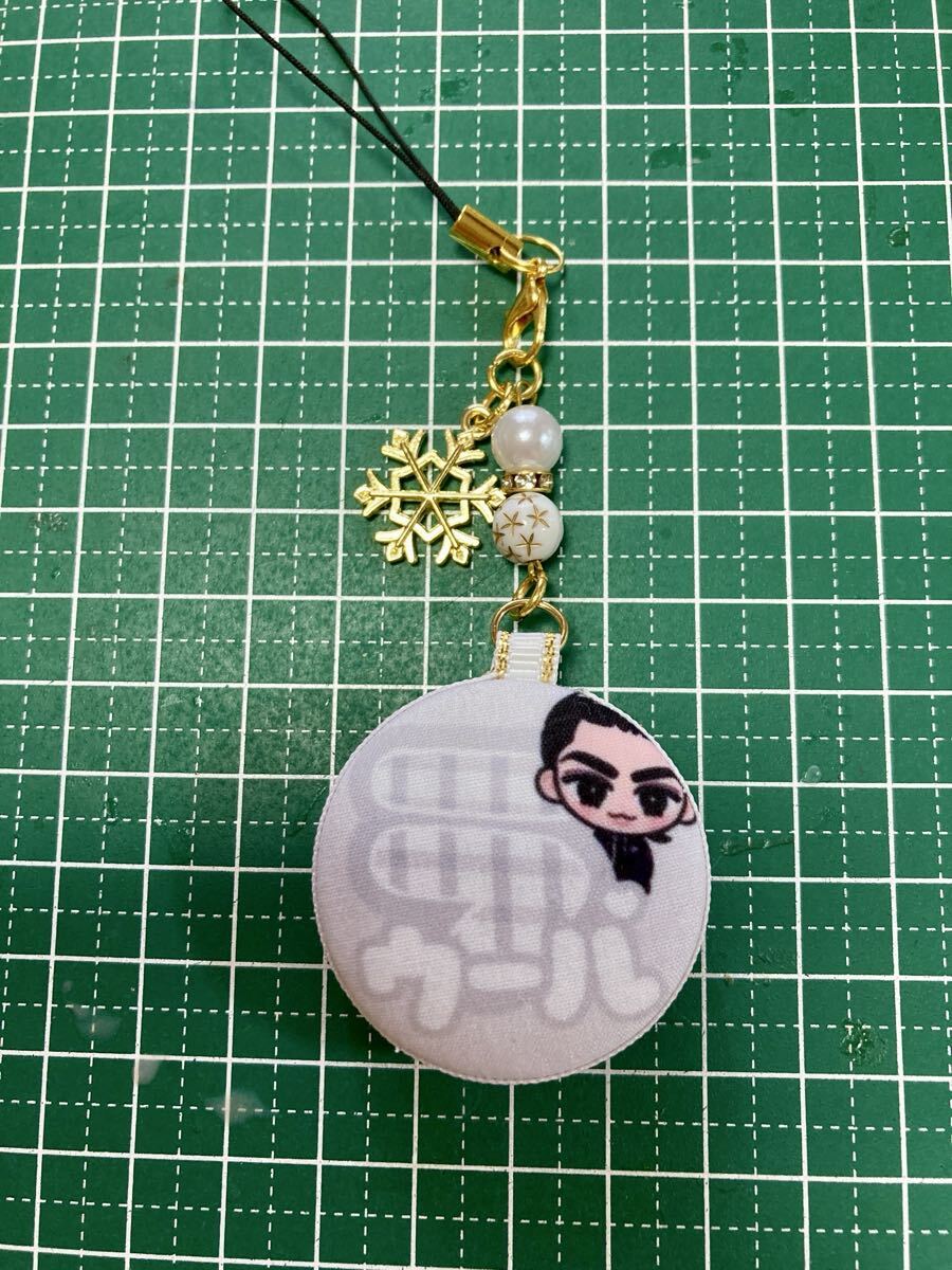 38mmのくるみボタンで作ったリバーシブルストラップです(^^)