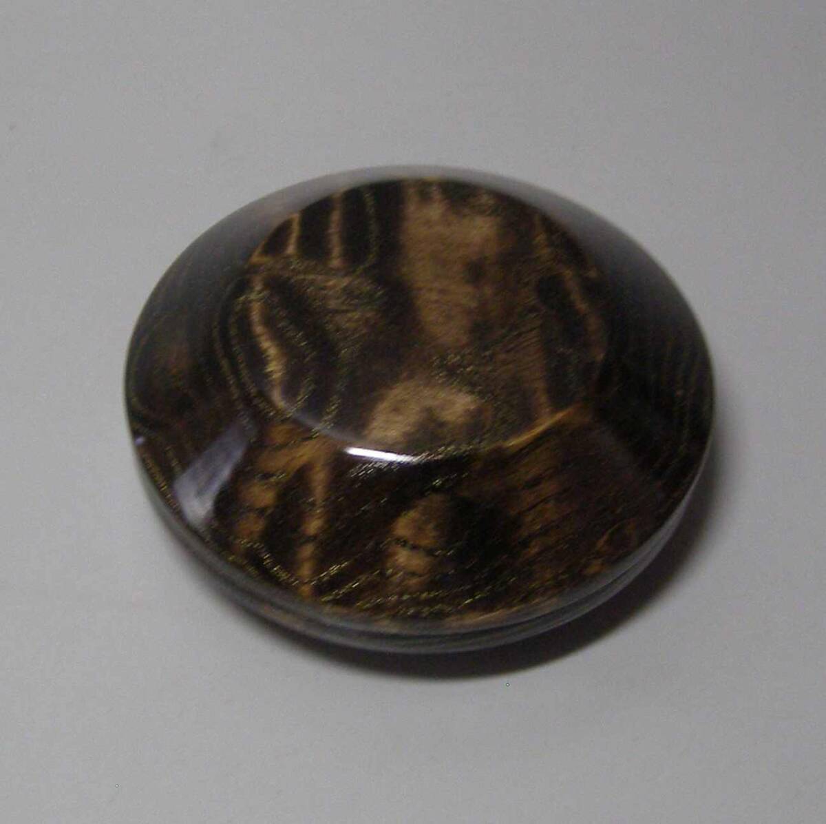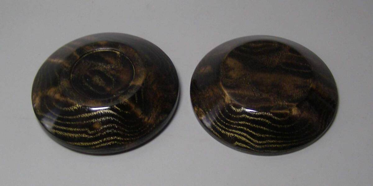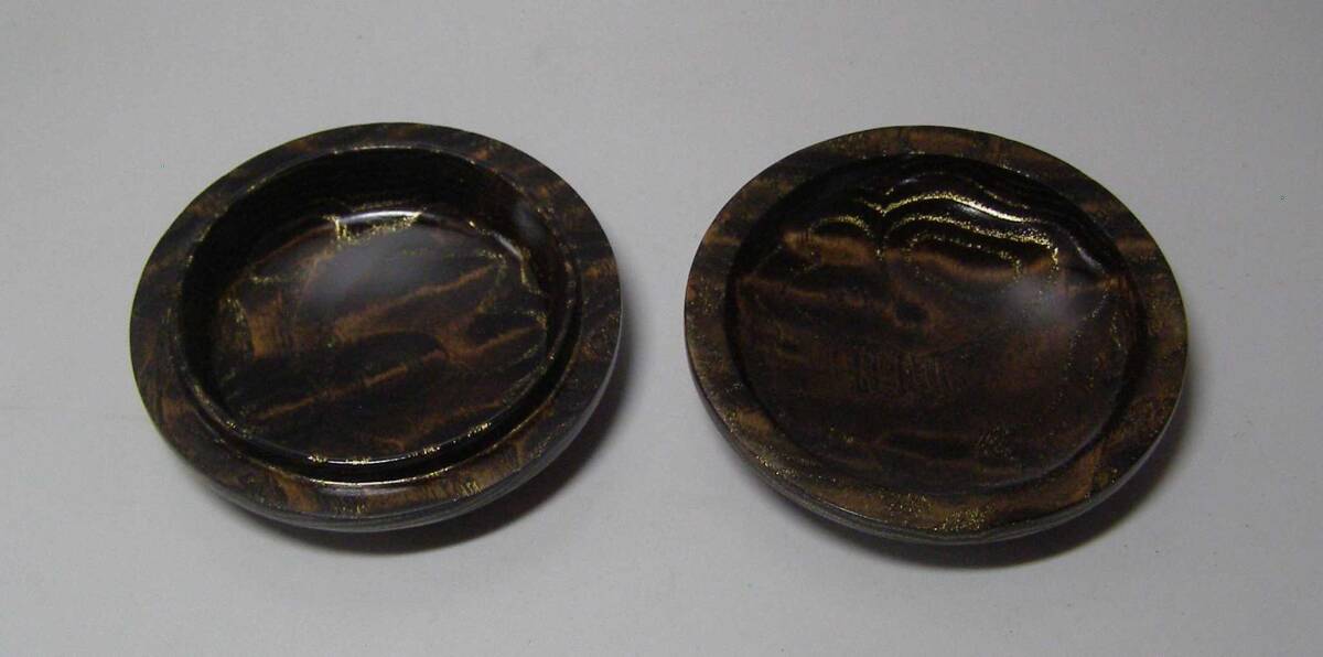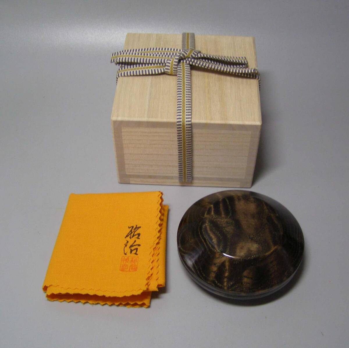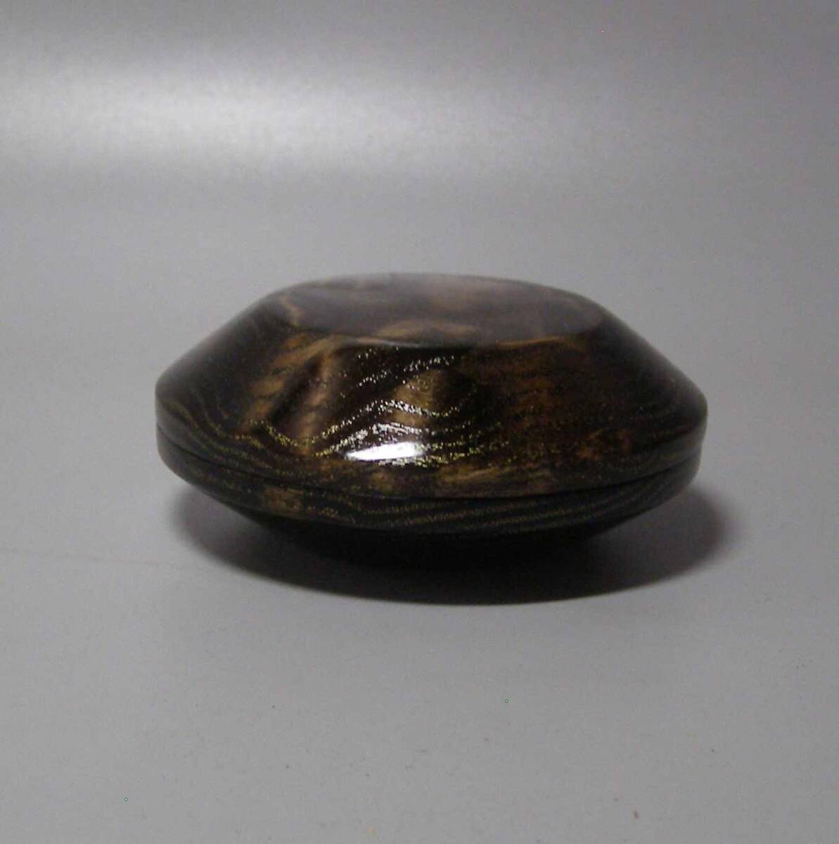 タモ玉斑杢を用いて 黒漆で染めて 木目沈金を年輪の導管に埋め込んだものです