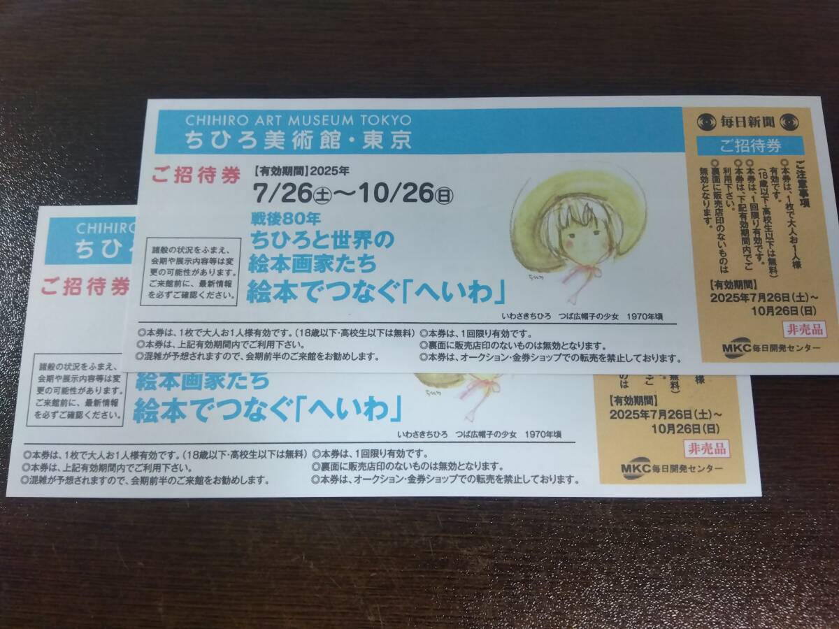 ちひろ美術館・東京 ご招待券2枚セット 10月26日まで有効 です。状態は写真でご確認ください。送付はミニレターとなります。