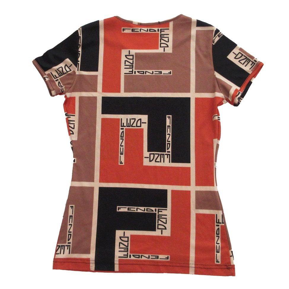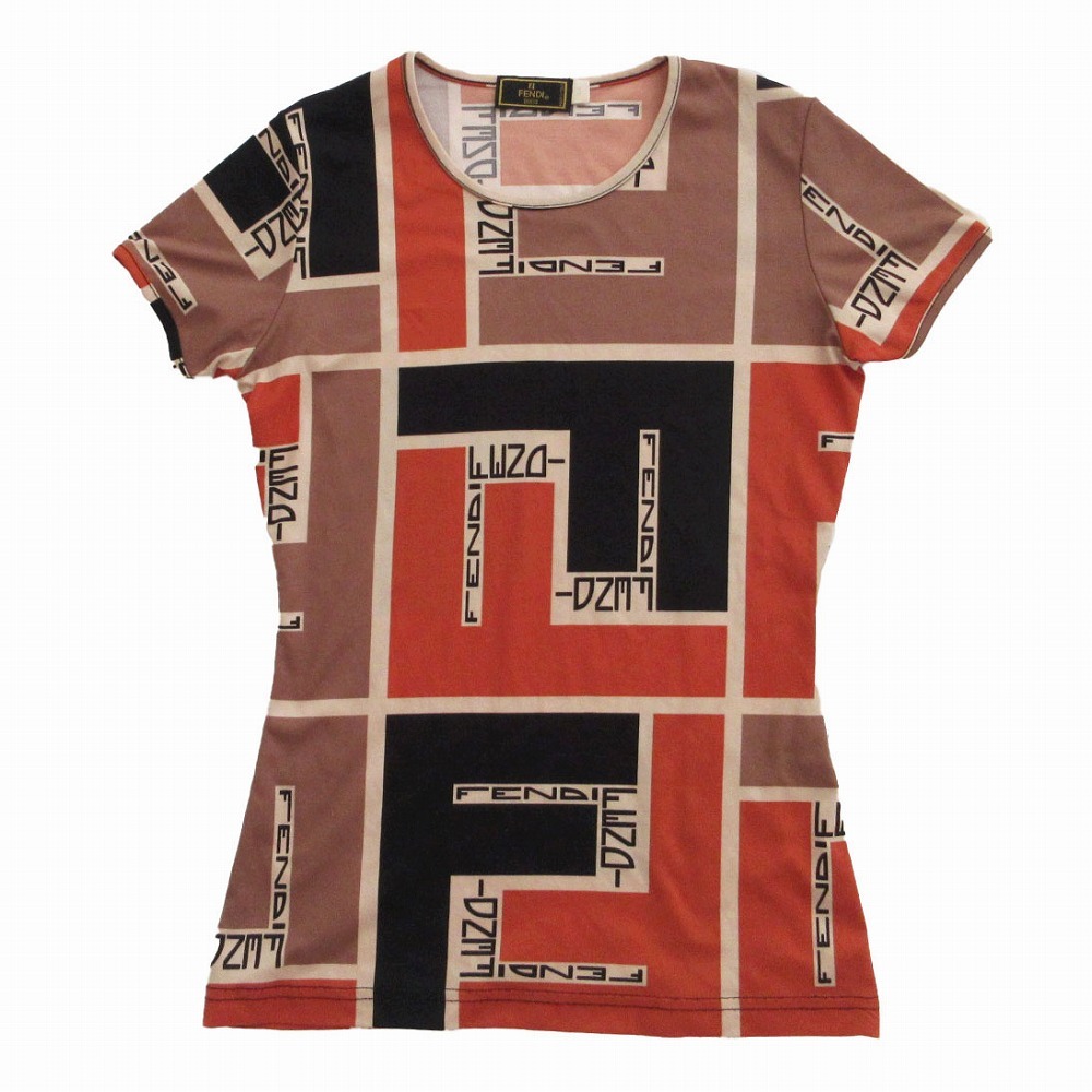 【FENDI フェンディ ロゴ総柄 ストレッチ Tシャツ トップス 半袖 ブラウン系 サイズXL レディース】 | |