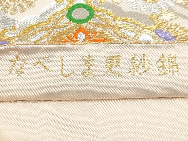 | 【正絹】 状態は接写画像のように、裏地に薄い汚れがございますが その他表地は特に目立ったシミ汚れなどもなく大変良い状態です。 着用時には見えない部分になりますのであまり気にならずお召になれるかと思います。 伝統的な西陣にあって、常に斬新な発想と 革新的な技法の習得により新境地を切り開いてきた龍村美術織物 古典的かつ独創的な見事な織りの世界が帯の上にいかんなく表現されました 初代龍村平藏が残した技法は現代へ余すことなく受け継がれ、 様々な製品を形づくる要素として今なお息づいています。 龍村美術織物 明治27年(1894) 初代平藏、織物業を創業 明治12年(1923) 東宮殿下(昭和天皇)御外遊記表紙裂謹織 昭和4年 (1929) 昭和天皇御即位大礼記録表紙裂謹織 昭和12年(1937) 初代平藏大阪府より功労賞を受ける 昭和28年(1953) 今上天皇御外遊に際し、御壁掛け四点を謹織 昭和31年(1956) 初代龍村平藏 芸術院恩賜賞を受ける 昭和41年(1966) 二代目龍村平藏襲名 昭和50年(1975) 衆参両院の内装裂地を製織 昭和51年(1976) 薬師寺金堂落慶に際し、錦幡「鴛鴦」「鳳凰」を制作、 三代目龍村平藏襲名 着物好きの方には憧れの存在、 名門龍村美術織物誂製の中でも 希少な平仮名「たつむら」の帯になります。 大変上質な極上の逸品になります。 お安く出品致しますので、是非この機会にいかがでしょうか?