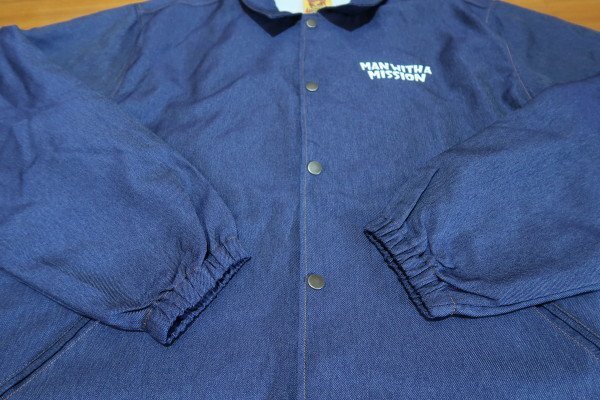マンウィズアミッション 15周年 コーチジャケット XLサイズ 未使用品です、肩幅約50.5cm 着丈約76cm 身幅約60.5cm 袖丈約66cmです、発送はレターパックプラスのみになります。