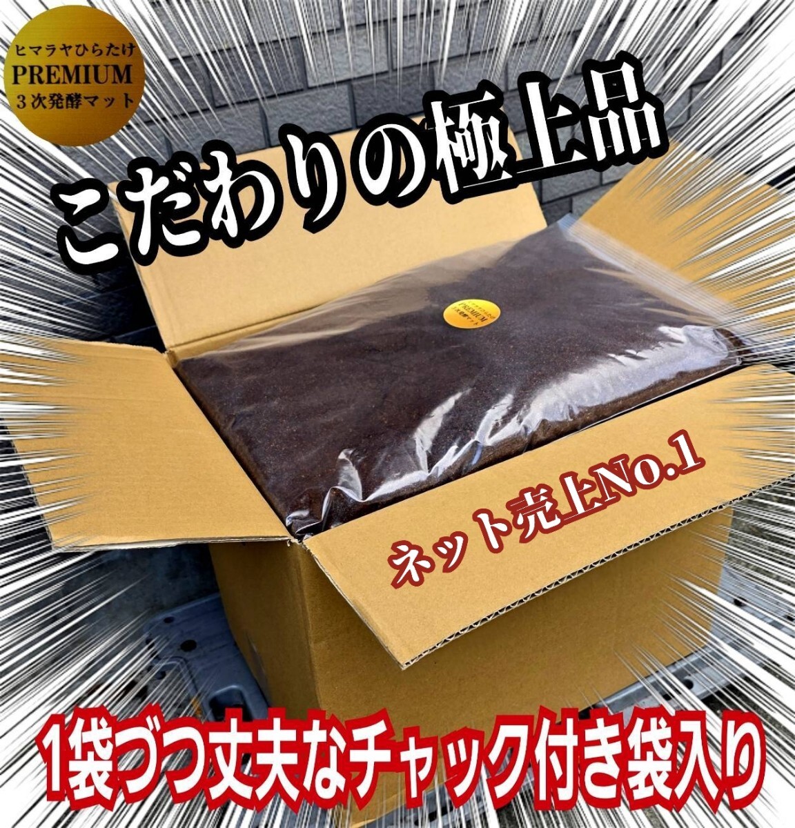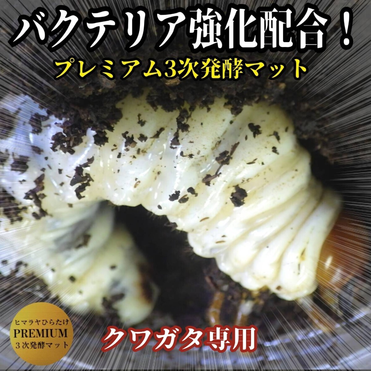 こだわりのクワガタ、カブトムシ用品を30年以上製造してきました。 たくさんのリピーター様には大変感謝申し上げます。 また、たくさんの効果報告を頂きありがとうございます。 ギネスサイズ連発の一番人気! 「極上!ヒマラヤひらたけプレミアム3次発酵クワガタマット』の出品です。 ![]() (写真添付欄に画像を10枚載せてありますのでご覧下さいませ) 10リットル×1袋 (丈夫で破れない便利なチャック付きの袋でマットが余っても長期保存できます) ご希望のリットル数がございましたら質問からメッセージ頂けたらご対応致します。 1箱に最大100リットルまで同梱できます。 1度に1000リットルまで発送可能です。 長年の研究からクワガタに最も有効であったクヌギのオガコを100%使用して作成した最高峰の新品の菌糸『ヒマラヤひらたけ』から仕上げた菌床発酵マットになります。 精密なマシーンで微粒子に粉砕して幼虫が食べやすくしトレハロースやグルコース、キトサン、ローヤルゼリー、高活性グルテン、アルギニン、カルシウム、ミネラル、酵素、酵母菌、特殊アミノ酸などの栄養添加剤を贅沢に通常3倍配合した拘りの特選プレミアムマットです。 さらに共生バクテリアも強化ブレンドしてあります。 バクテリアを配合することで消化管内でタンパク源となるセルロース等を分解する体内共生微生物が活発になり栄養の吸収率が向上します。 若齢時から与えることがサイズアップに繋がります。 実験でも体内バクテリア等の共生微生物を豊富に含んだプレミアム発酵マットで飼育した幼虫の方が市販のマットより断然サイズアップしています。 初令はプリンカップに2令以降はボトルに詰めるだけですぐに使えます。 菌糸瓶は死亡率が高いですがプレミアム3次発酵マットは落ちることが全くありません。 ![]() キノコ屋さんが廃棄した「廃菌床」などは一切使わず、クヌギのオガから作成した新品の菌床を粉砕し管理された室内で長期間じっくり3次発酵させてます。 長い時間と高額なコストをかけて完成した究極のこだわりマットです。 一般的な他社の発酵マットはキノコ屋さんが廃棄した廃菌床を原料に使ってるのがほとんどで栄養価も低下してます。 また、安価なマットは野外で発酵させてる為、雑虫やコバエの卵が混入してる場合が多く飼育中に雑虫がわくのです。 ![]() 当社の「プレミアム3次発酵マット」は新品の菌床だけを管理された室内でじっくり発酵させてますので雑虫混入が100%ありませんので飼育中に雑虫やコバエがわきません! ※外部からコバエが混入しないようにフィルター付きのケースがお薦めです。 ![]() ギネスサイズがどんどん羽化してお陰さまでリピート率は90%以上と人気のマットになってます。
