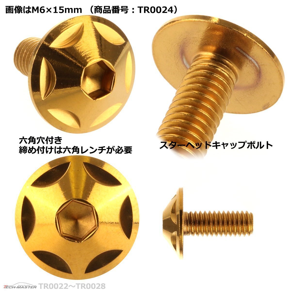 ボタンボルトにデザインを施したデザインボルトです。 ボルトの紛失時やドレスアップに最適なボルトです。 |