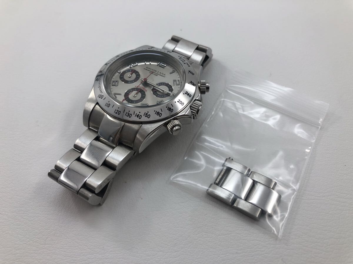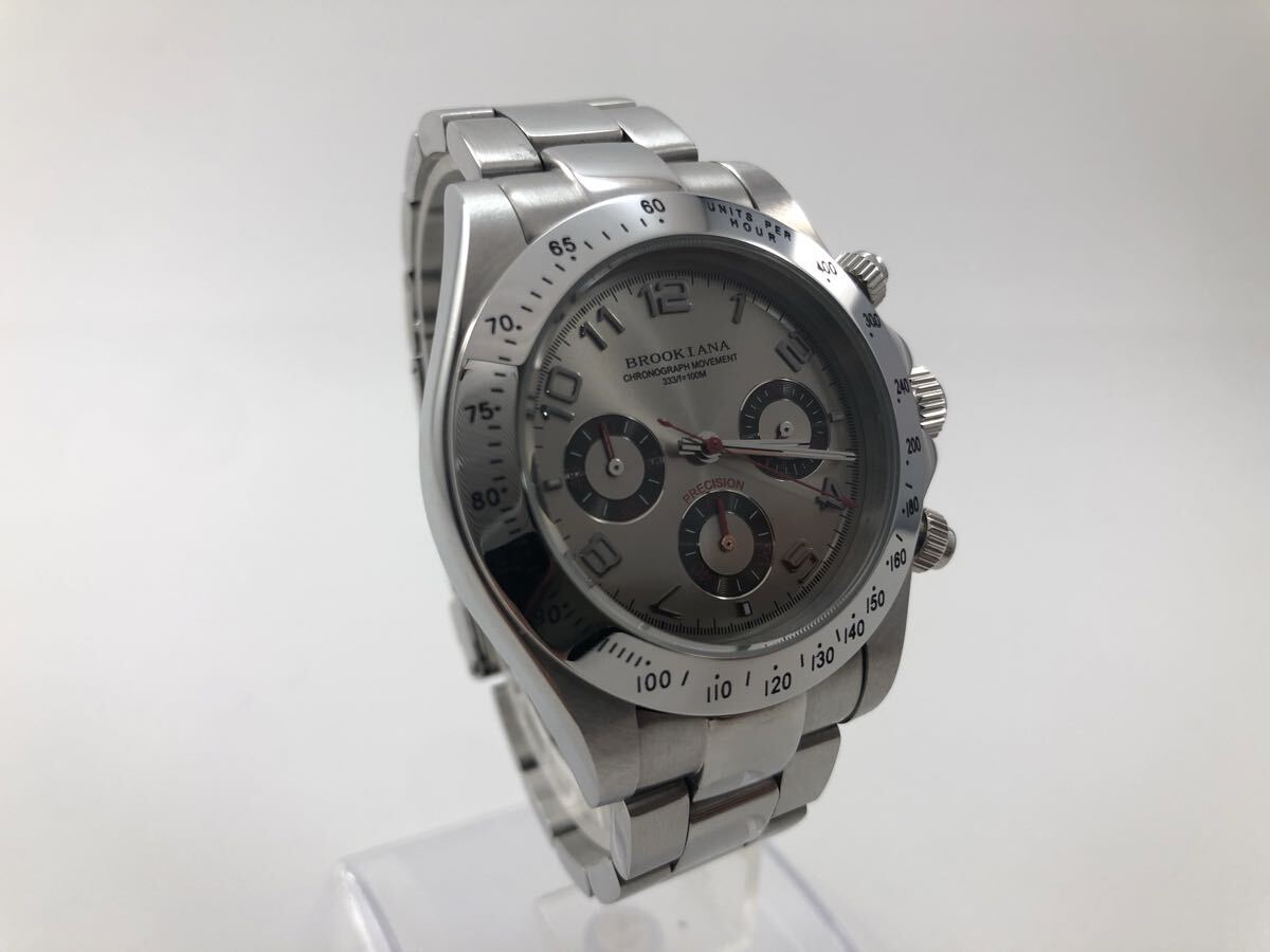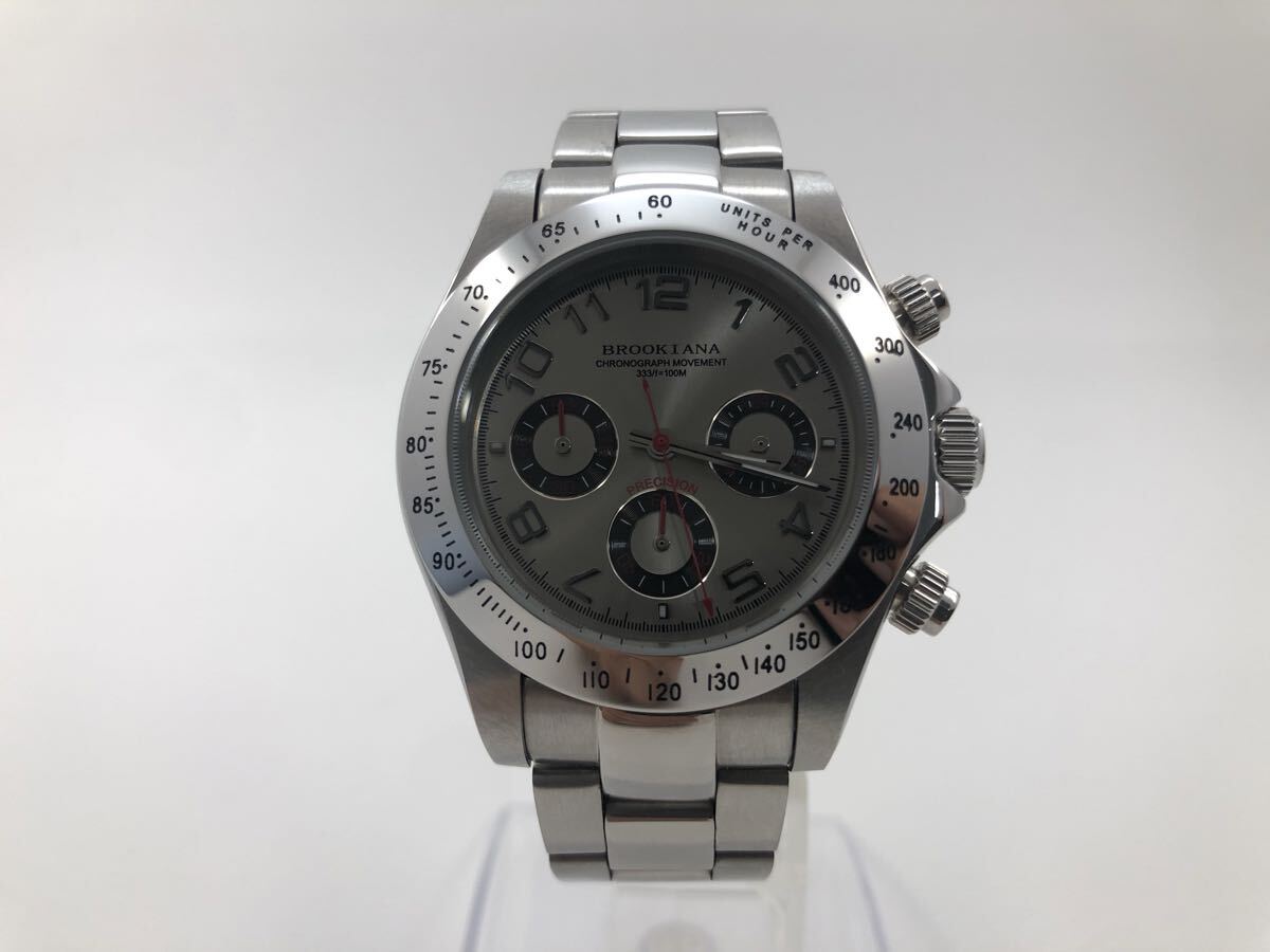 【稼働美品!!】ブルッキアーナ・デイトナ風ウォッチ・クロノグラフ・コマ付き[BROOKIANA QUARTZ]クォーツ式メンズ腕時計【中古品】