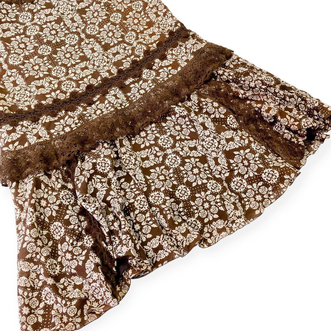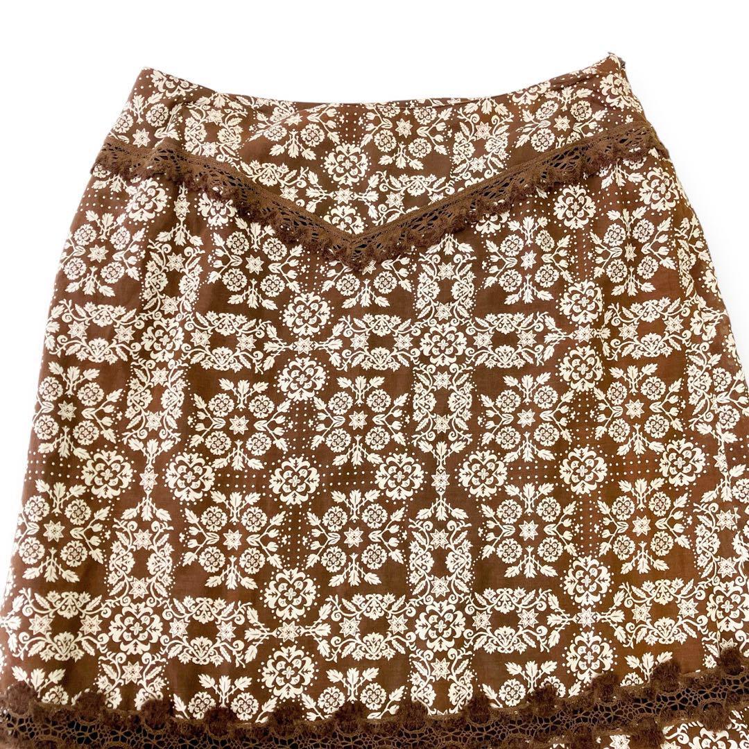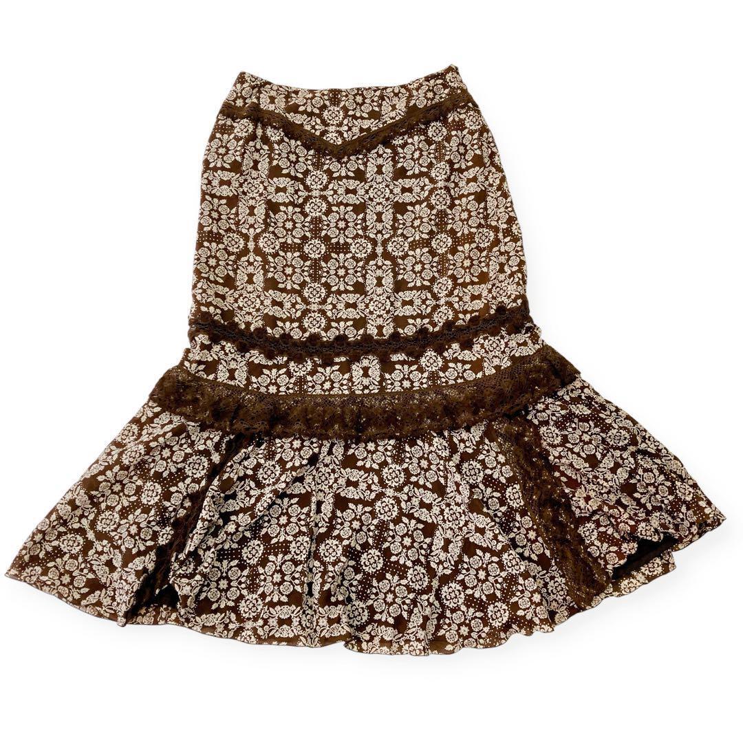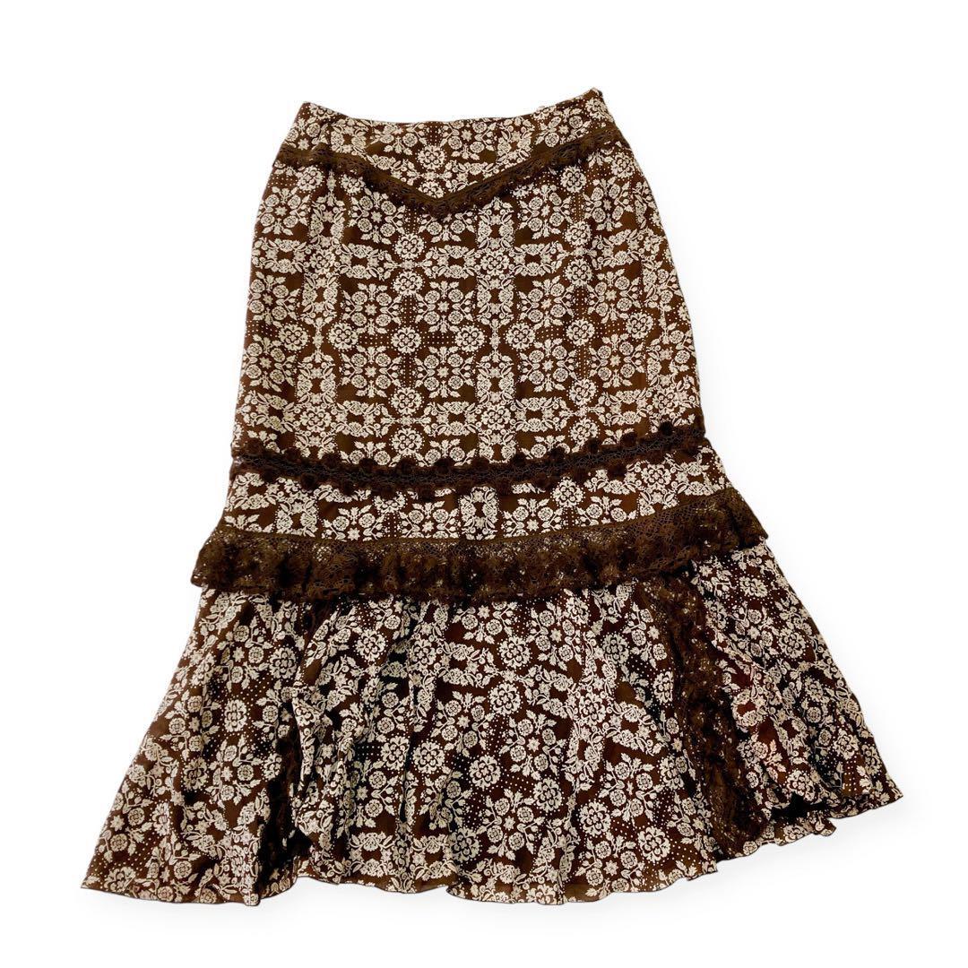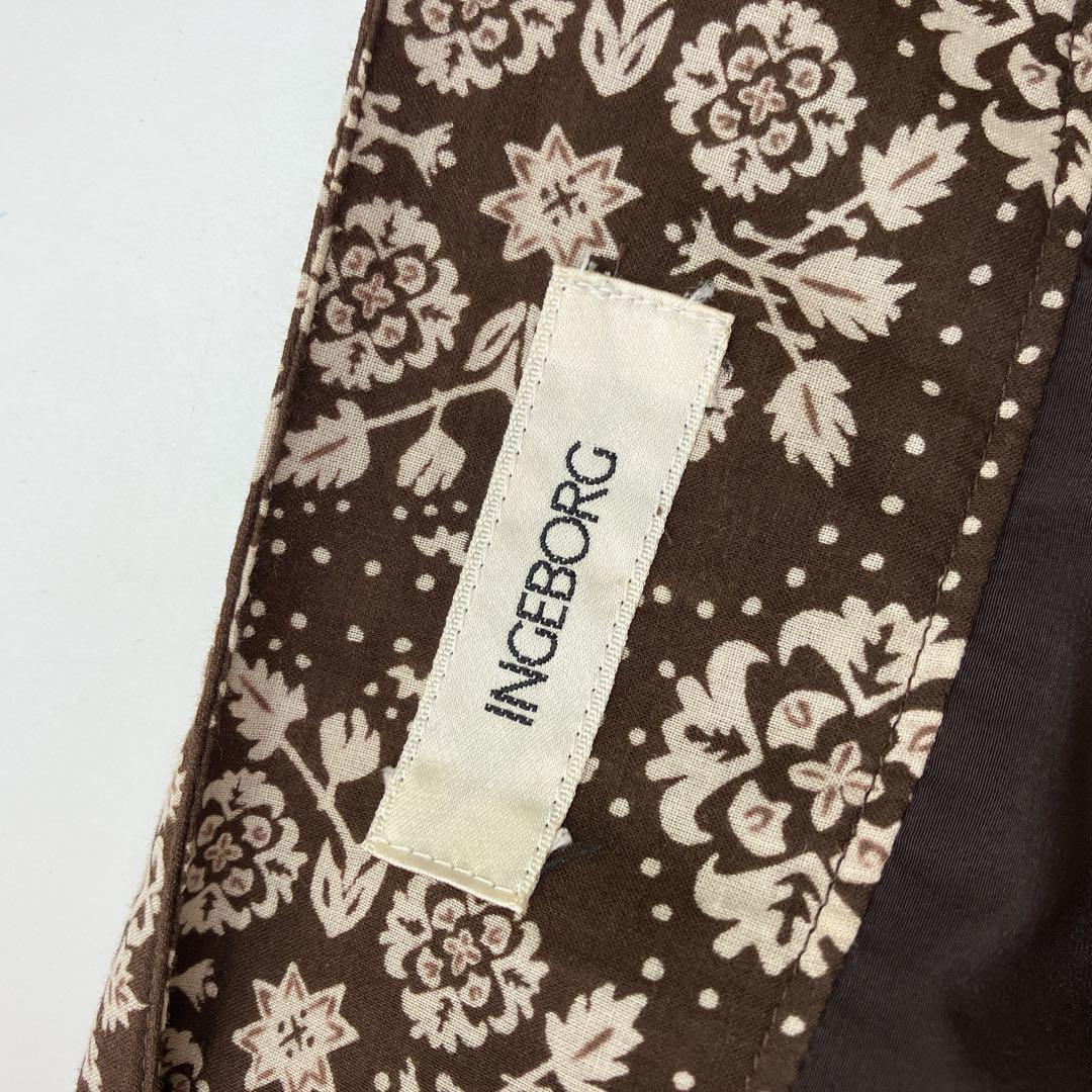 インゲボルグ KANEKO ISAO カネコイサオ PINK HOUSE ピンクハウス レディース 花柄 スカート Mサイズ ロング 総柄 フリル 綿 ウール ブラウン
