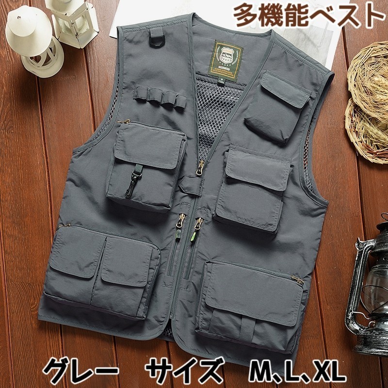 通気性が良く、速乾性・防風性・防汚性にも優れています。抜群の収納力と軽量性、耐久性も揃えるベストです。季節や用途を問わず万能に使えるアウトドアベストです。ウオーキング、登山、撮影、釣り、フィッシング、作業、キャンプ、遠足、旅行、ランニング、サイクリング、ゴルフなどの幅広いなどのシーンで利用することができます。機能性にもしっかりこだわった一枚に仕上げています。防災バック替わりとしても役に立ちます。お誕生日などのギフトとしても最適です。