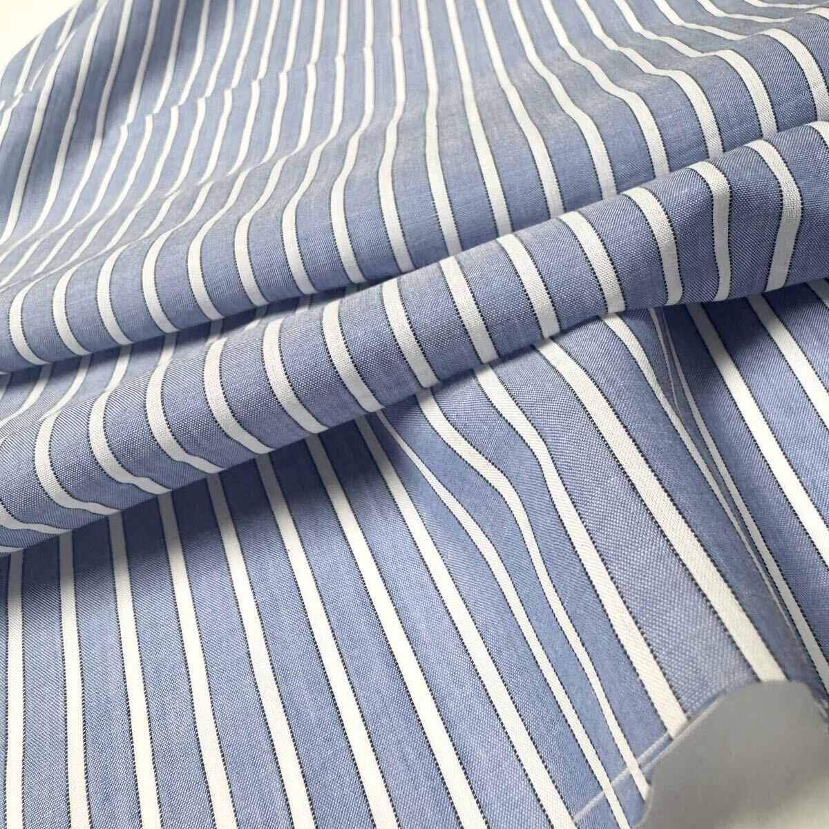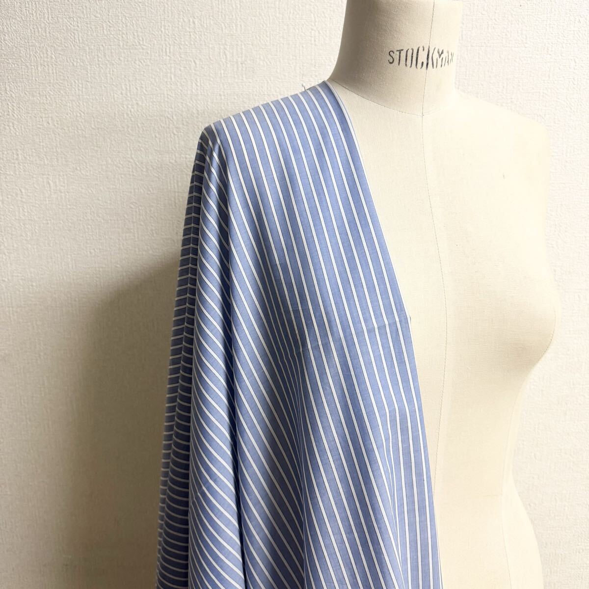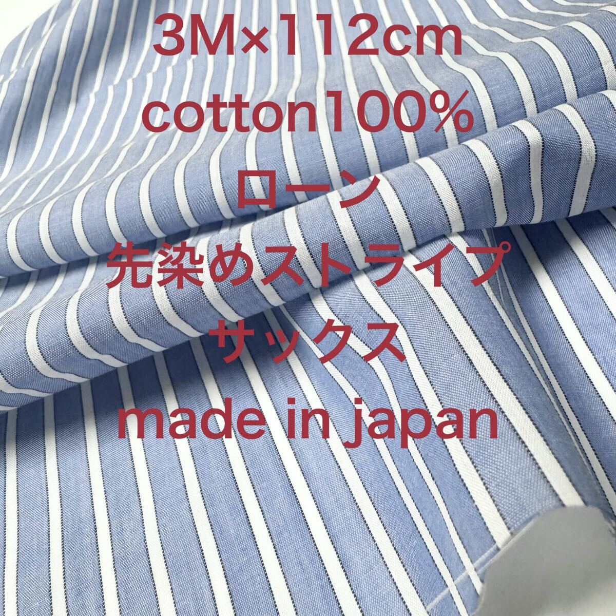 即決3M国産コーマコットンローン先染め3色ストライプサックスブルー水色綿生地布地