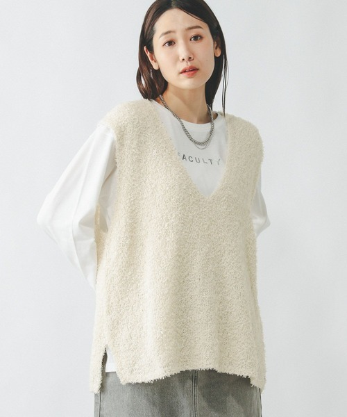 「GLOBAL WORK」 ベスト LARGE オフホワイト レディース