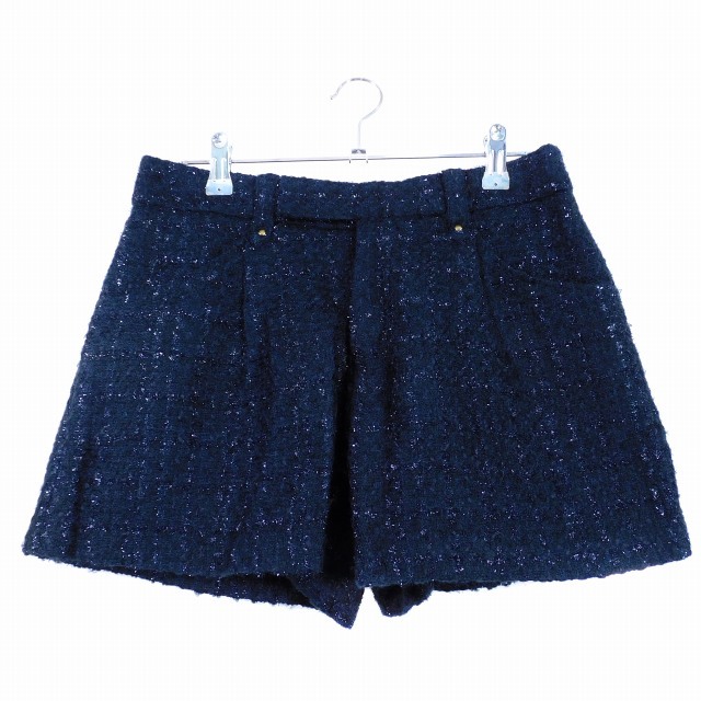 ロペピクニック ROPE Picnic ショーパン パンツ ショート タック ジップフライ ツイード 38 紺 ネイビー ボトムス /T2 レディース