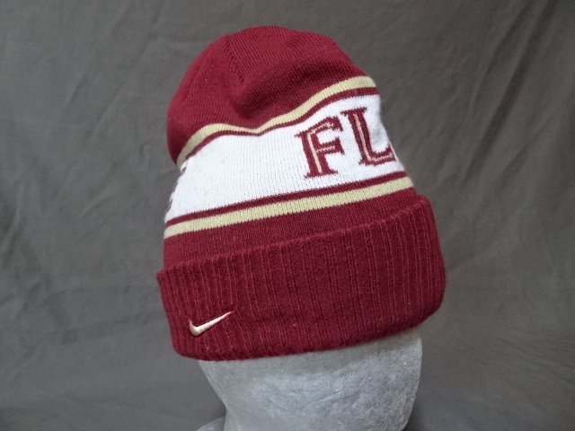 激レア USA購入 ナイキ【Nike】製 USカレッジ フロリダ州立大学【FLORIDA STATE】スウォッシュ ロゴ刺繍入り ニットキャップ 中古品