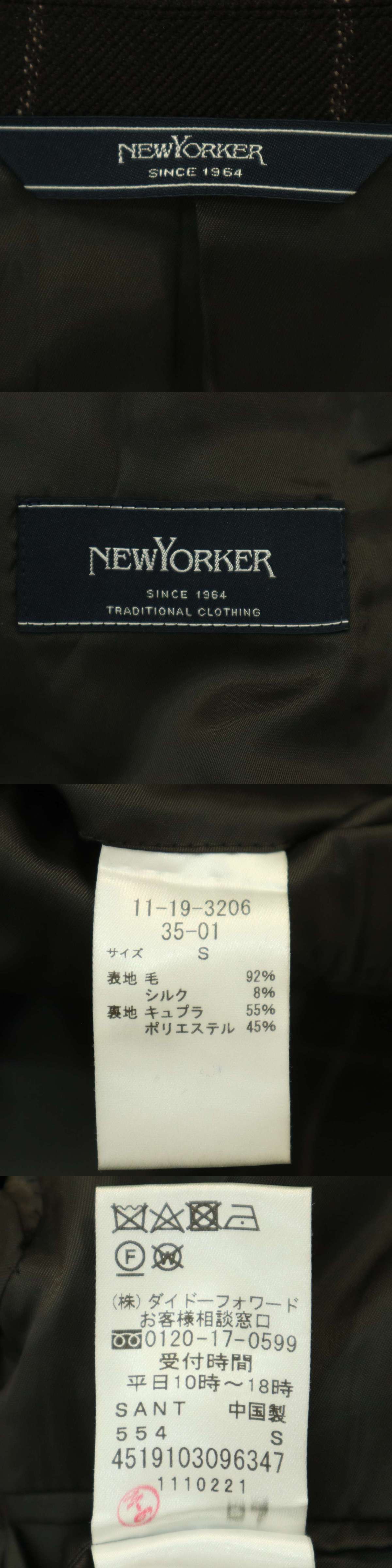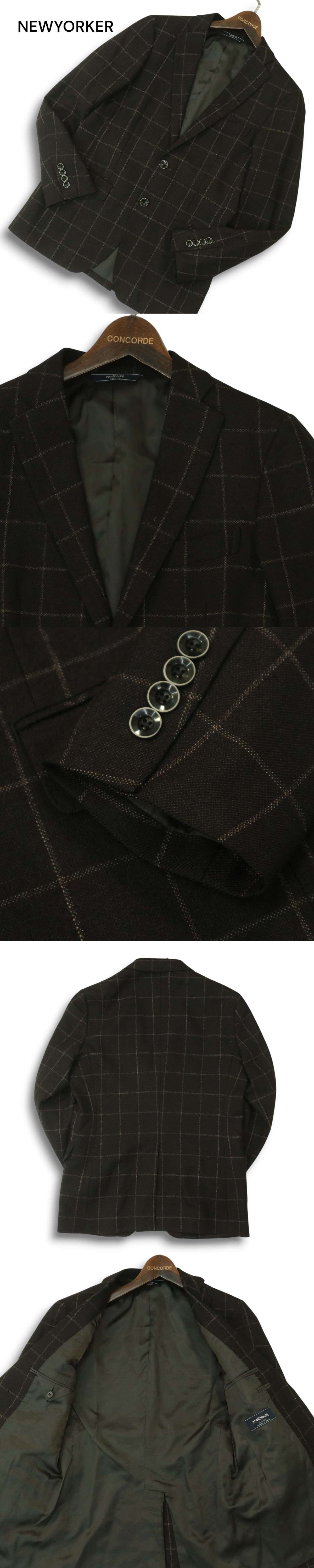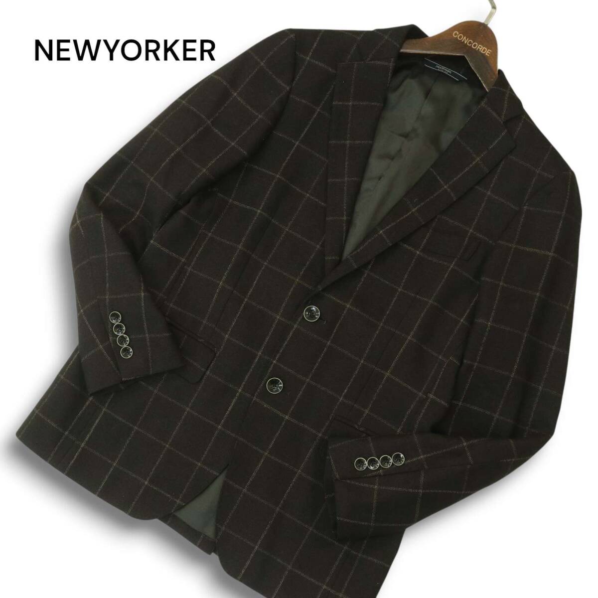 NEWYORKER ニューヨーカー 秋冬 総裏★ ウール シルク混 ウィンドウペン チェック テーラード ジャケット Sz.S メンズ