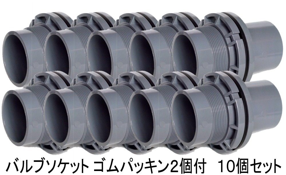 バルブソケット50A ゴムパッキン2個付×10個セット 水槽 給排水 オーバーフロー 配管 塩ビ管 給排水