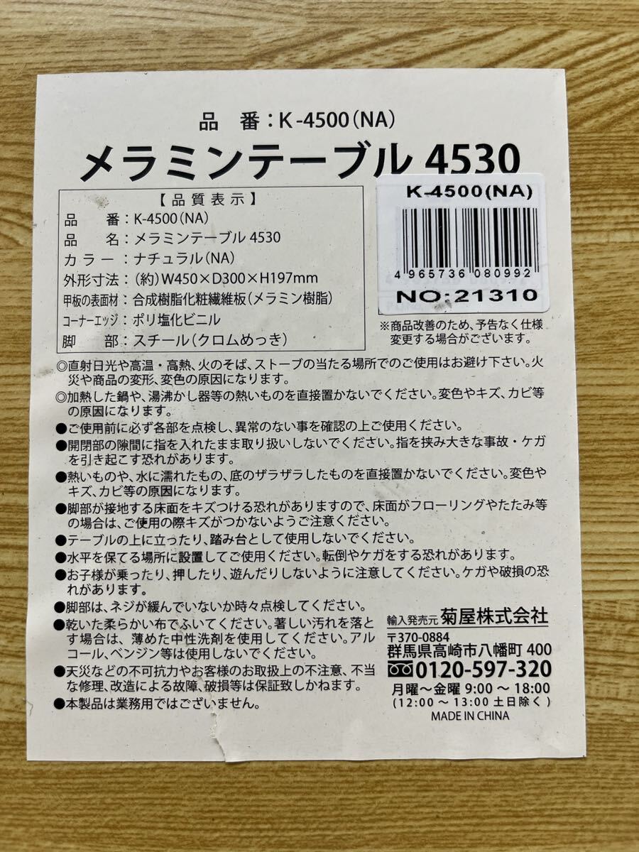 RE7191 折りたたみ 簡易メラミンテーブル 4530 K-4500 幅約45×30cm 現状品 0901