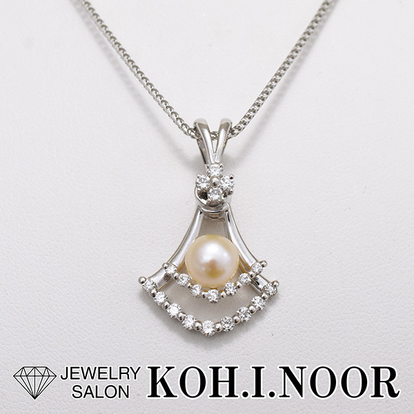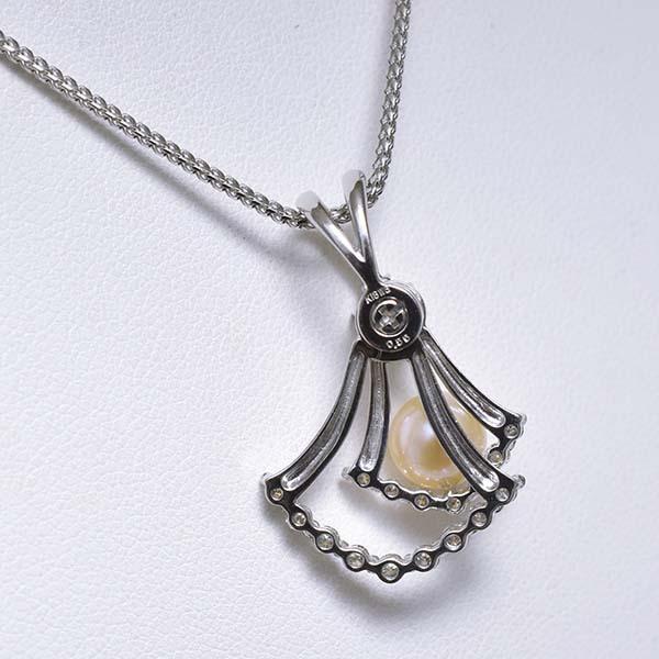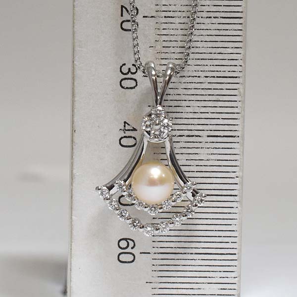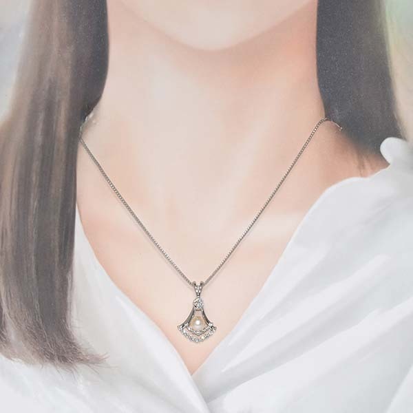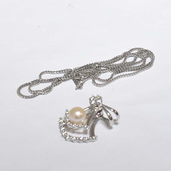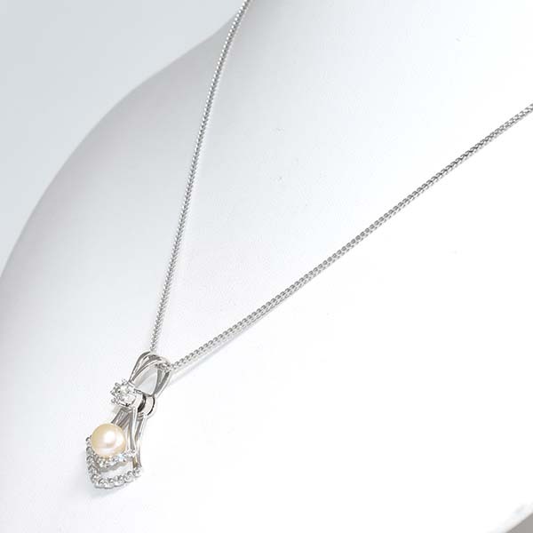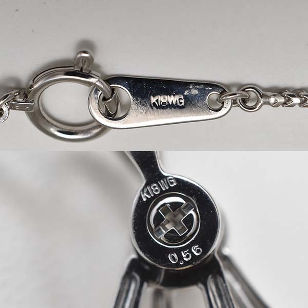 ふたつのパーツが揺れる18金ホワイトゴールド製のペンダントネックレス。